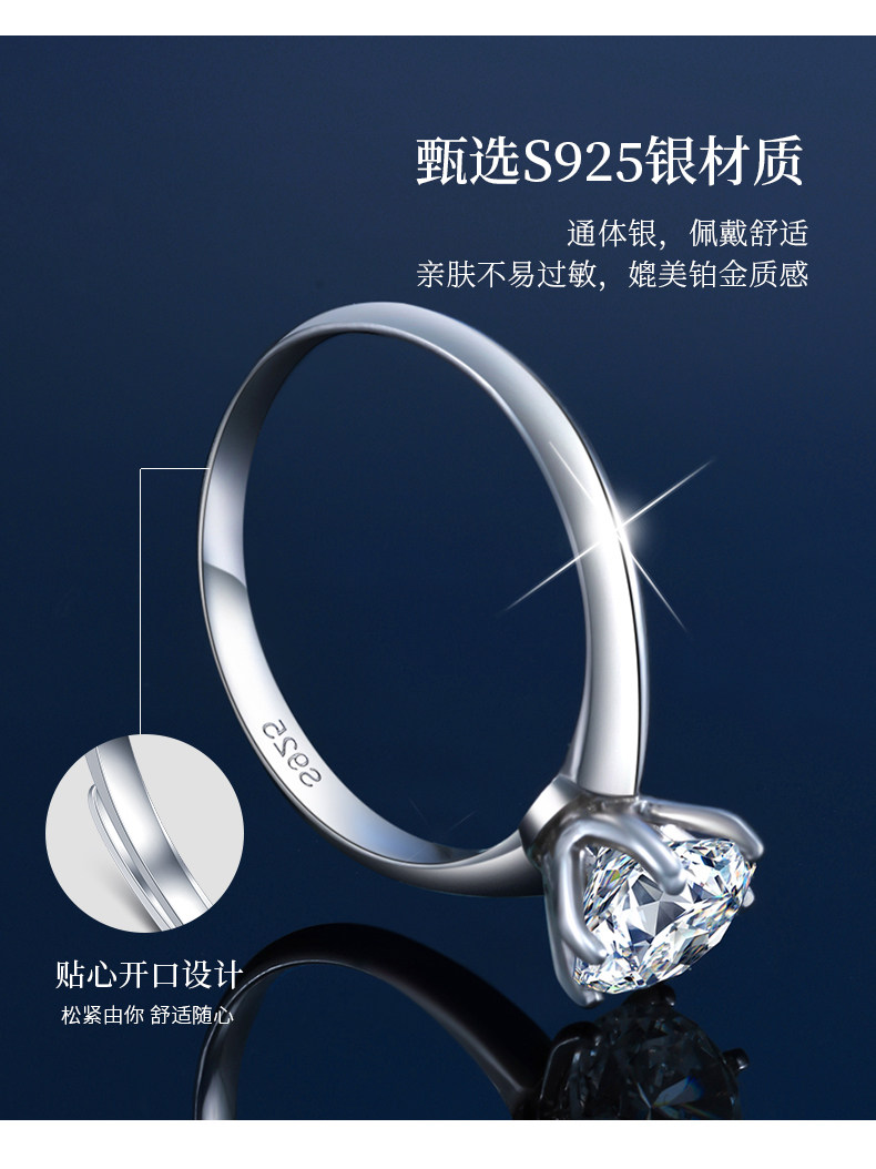 Кольцо с камнем, обручальное кольцо для влюбленных, серебро 925 пробы, один карат