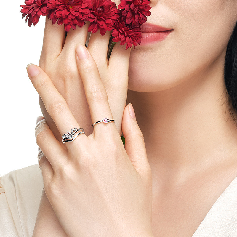 Pandora, красное небольшое дизайнерское кольцо с камнем, серебро 925 пробы, легкий роскошный стиль