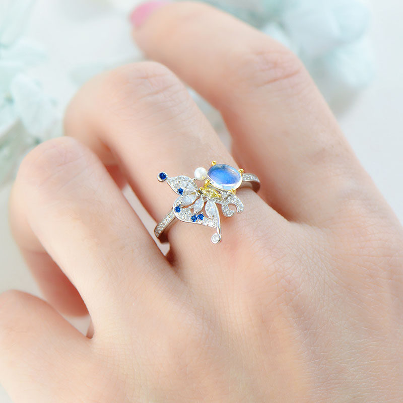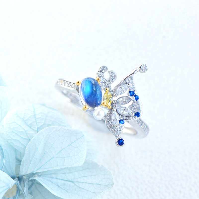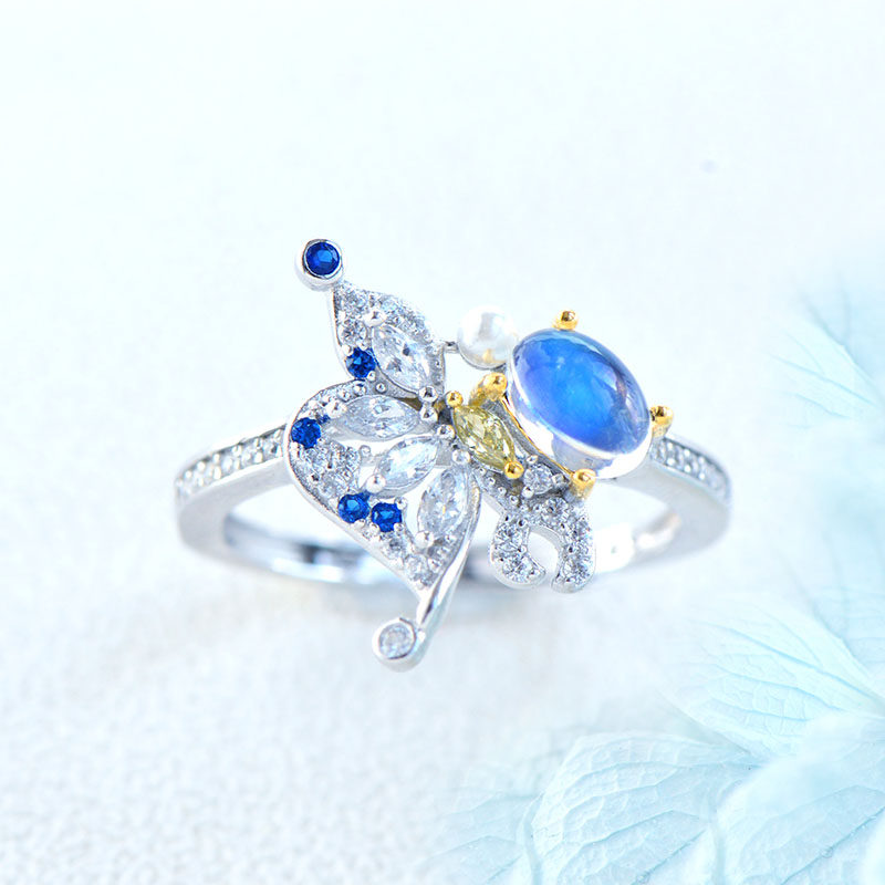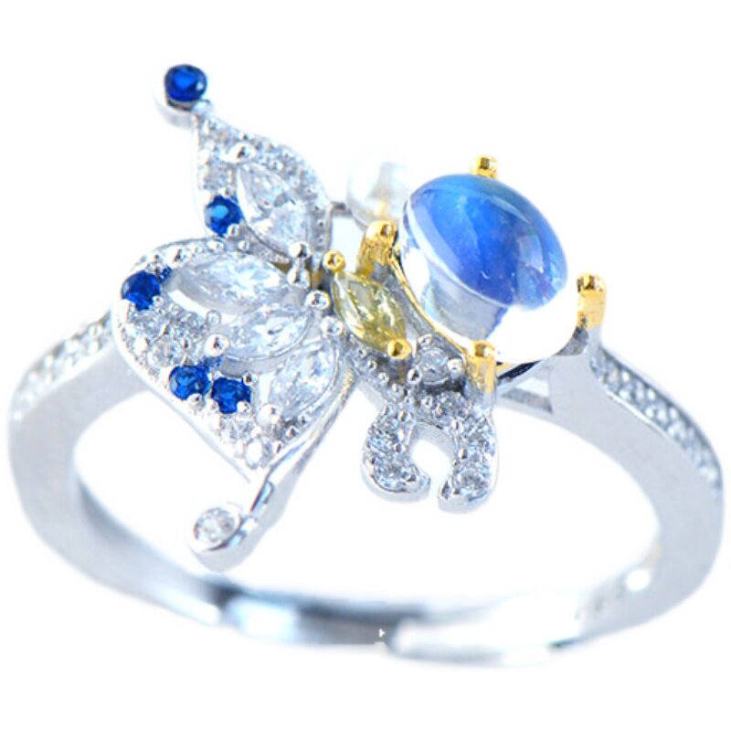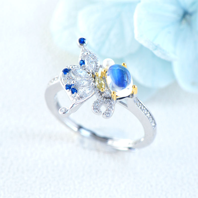 Небольшое кольцо из нефрита, дизайнерское ювелирное украшение, лунный камень, серебро 925 пробы, простой и элегантный дизайн, легкий роскошный стиль, тренд сезона