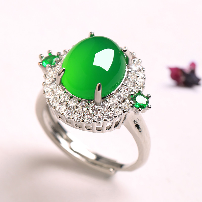 Натуральное агатовое изумрудное кольцо, инкрустация камня из нефрита, имитация льда, серебро 925 пробы, женский стиль