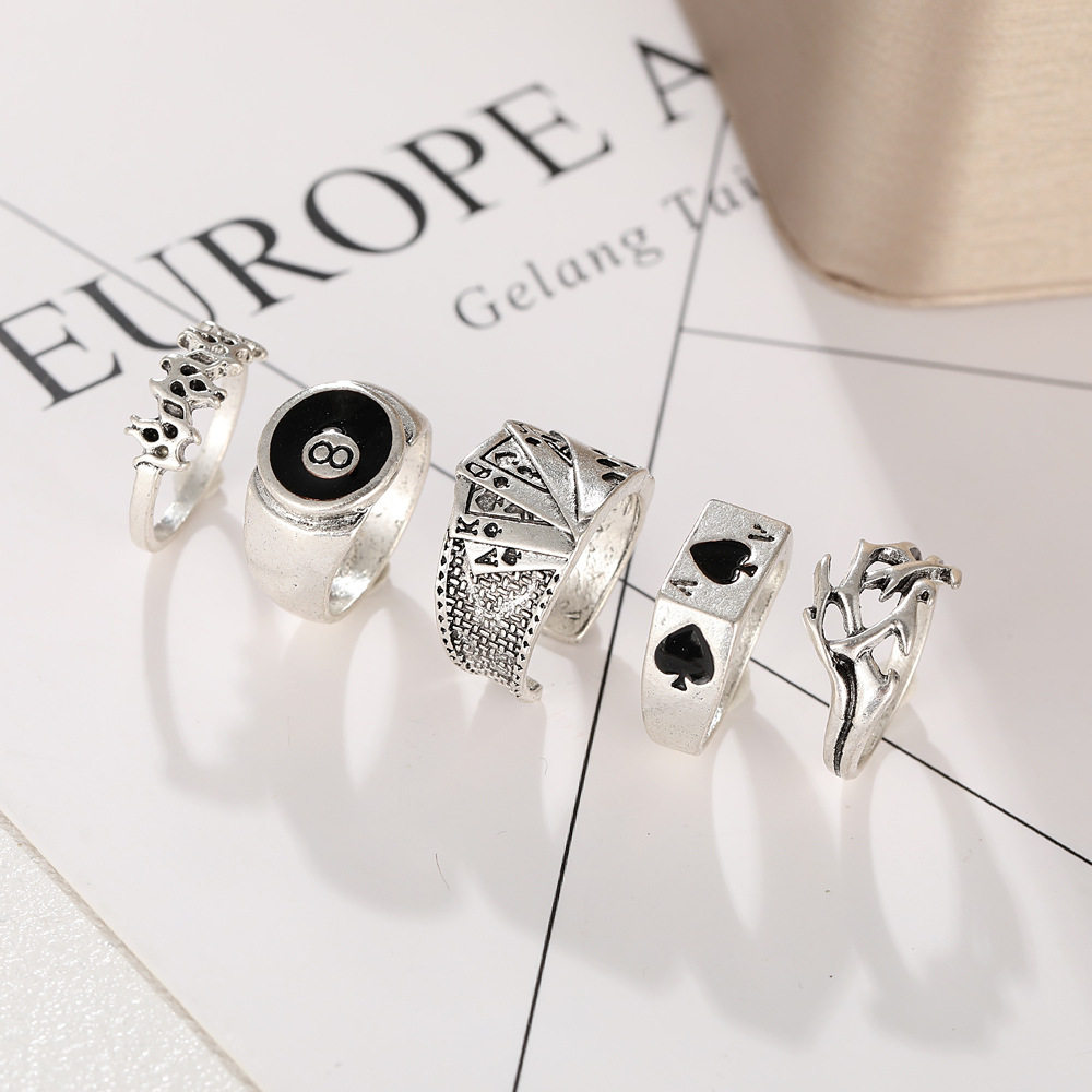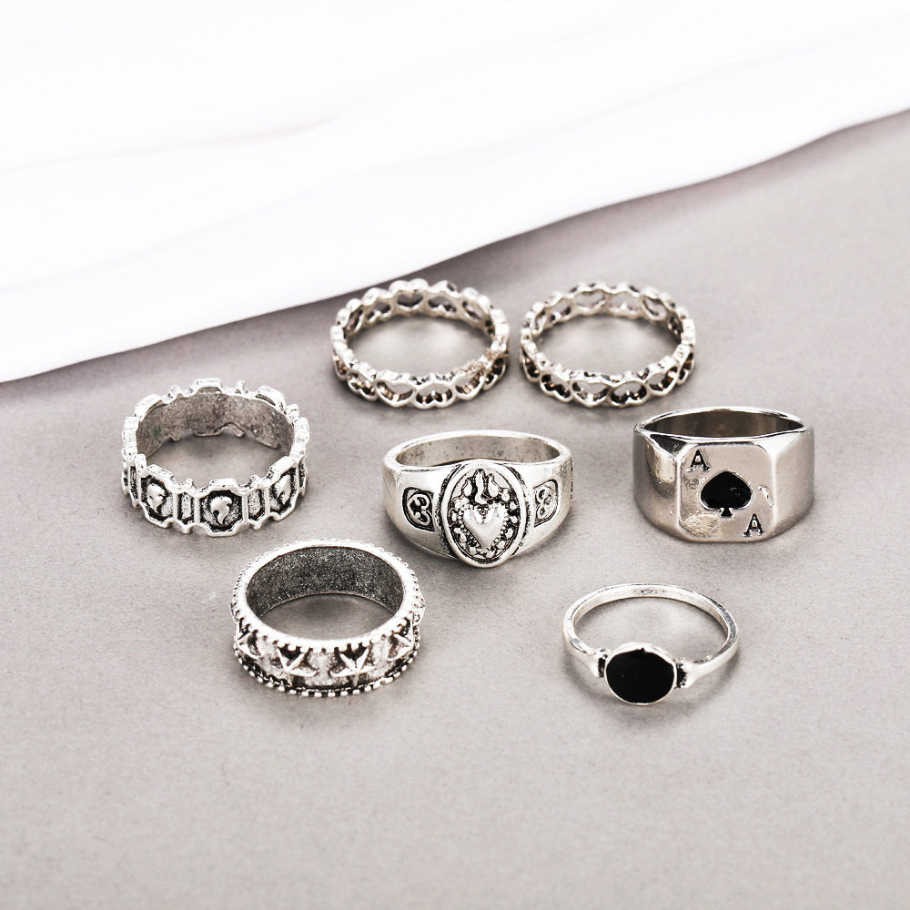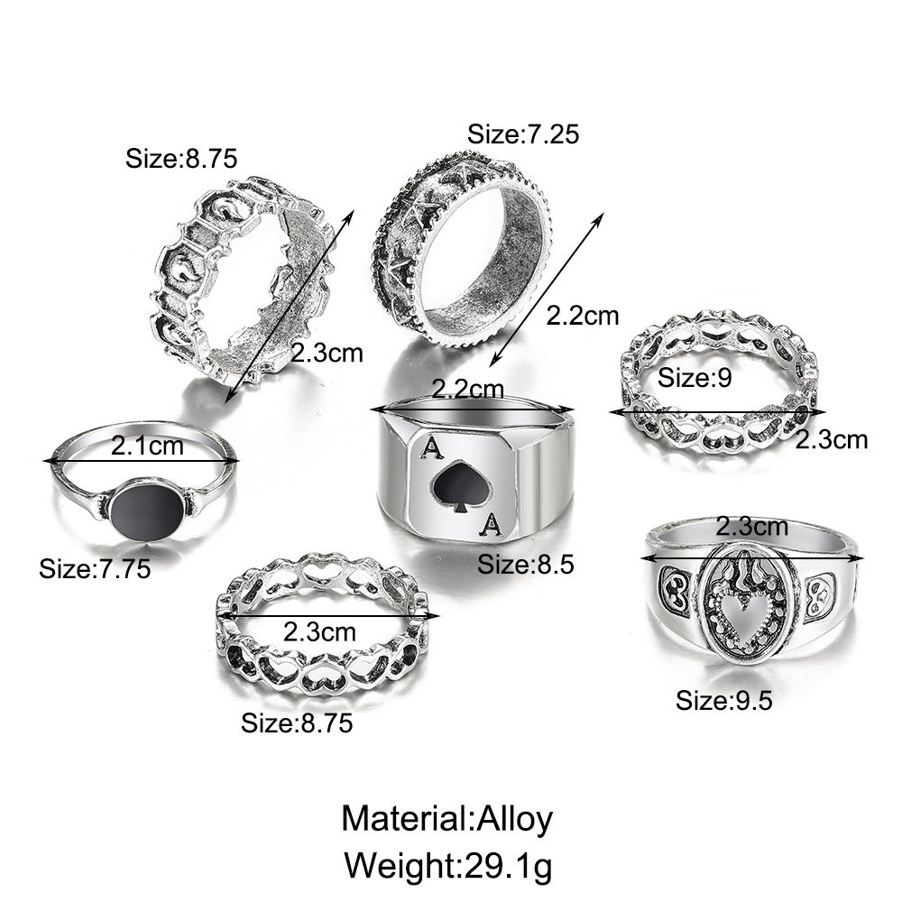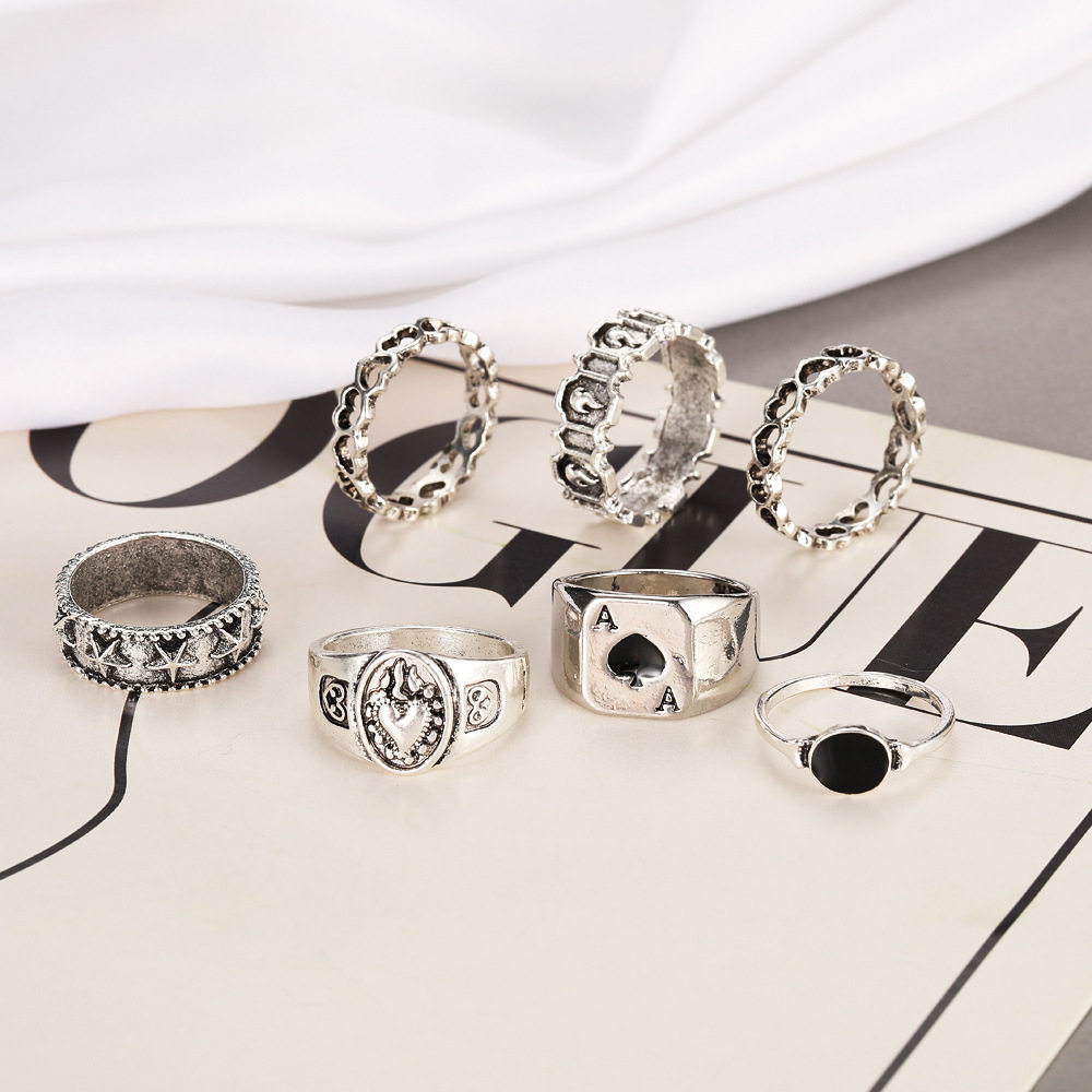 7pcs set card poker ring men's playlard spades spades spades set 7 peece set set