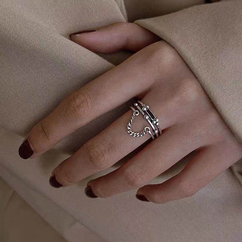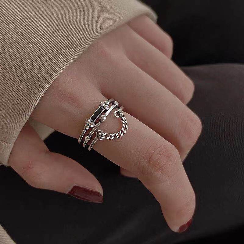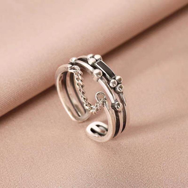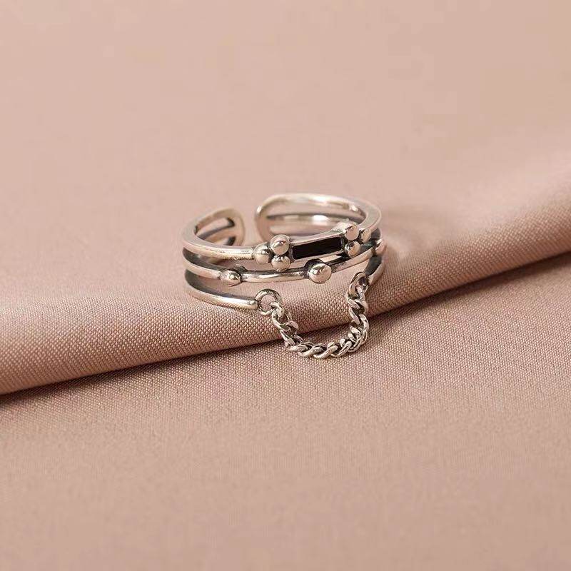 Цепь, ретро безразмерное кольцо, серебро 925 пробы, 2021 года, на указательный палец