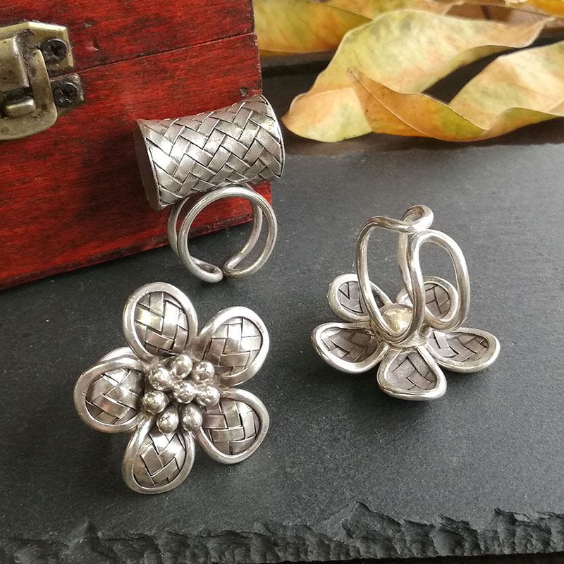 Плетеное регулируемое небольшое дизайнерское безразмерное кольцо ручной работы, серебро 925 пробы, на указательный палец, Таиланд