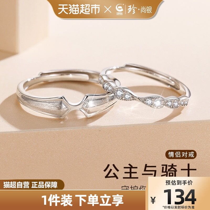 - [SF бесплатная доставка] Серебряные пары принцессы и кавалеров [подарочная коробка China Gold+сертификат+тег]