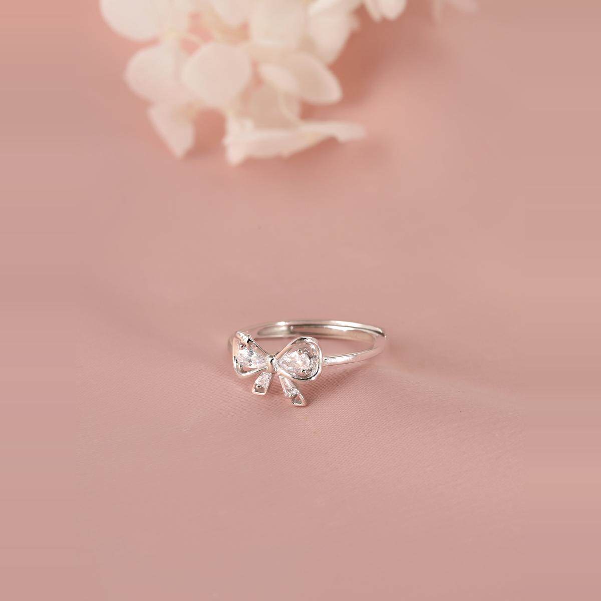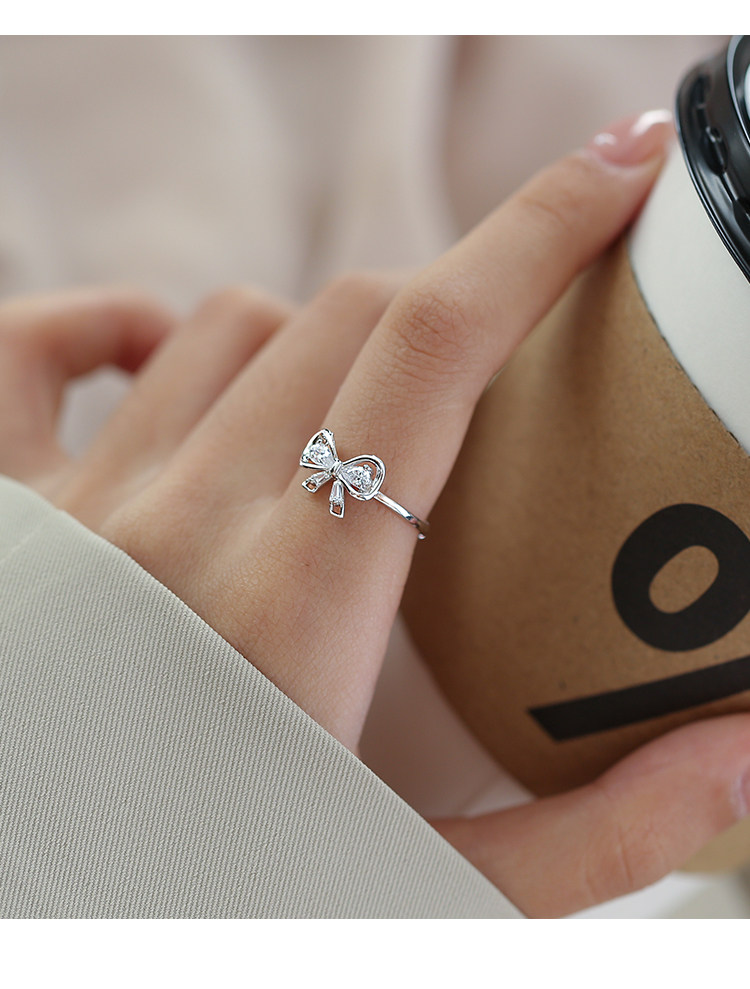 Регулируемое милое брендовое кольцо с бантиком, серебро 925 пробы, легкий роскошный стиль