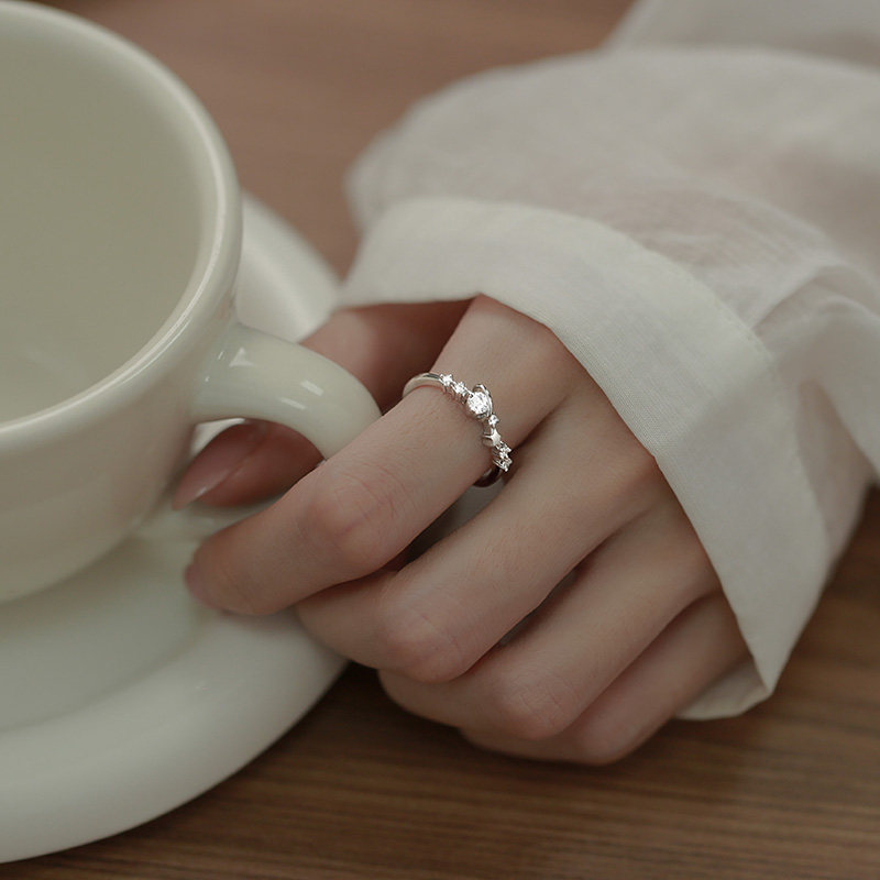 Дизайнерское свежее кольцо с камнем с цирконом, серебро 925 пробы, микроинкрустация, тренд сезона, серебро 925 пробы