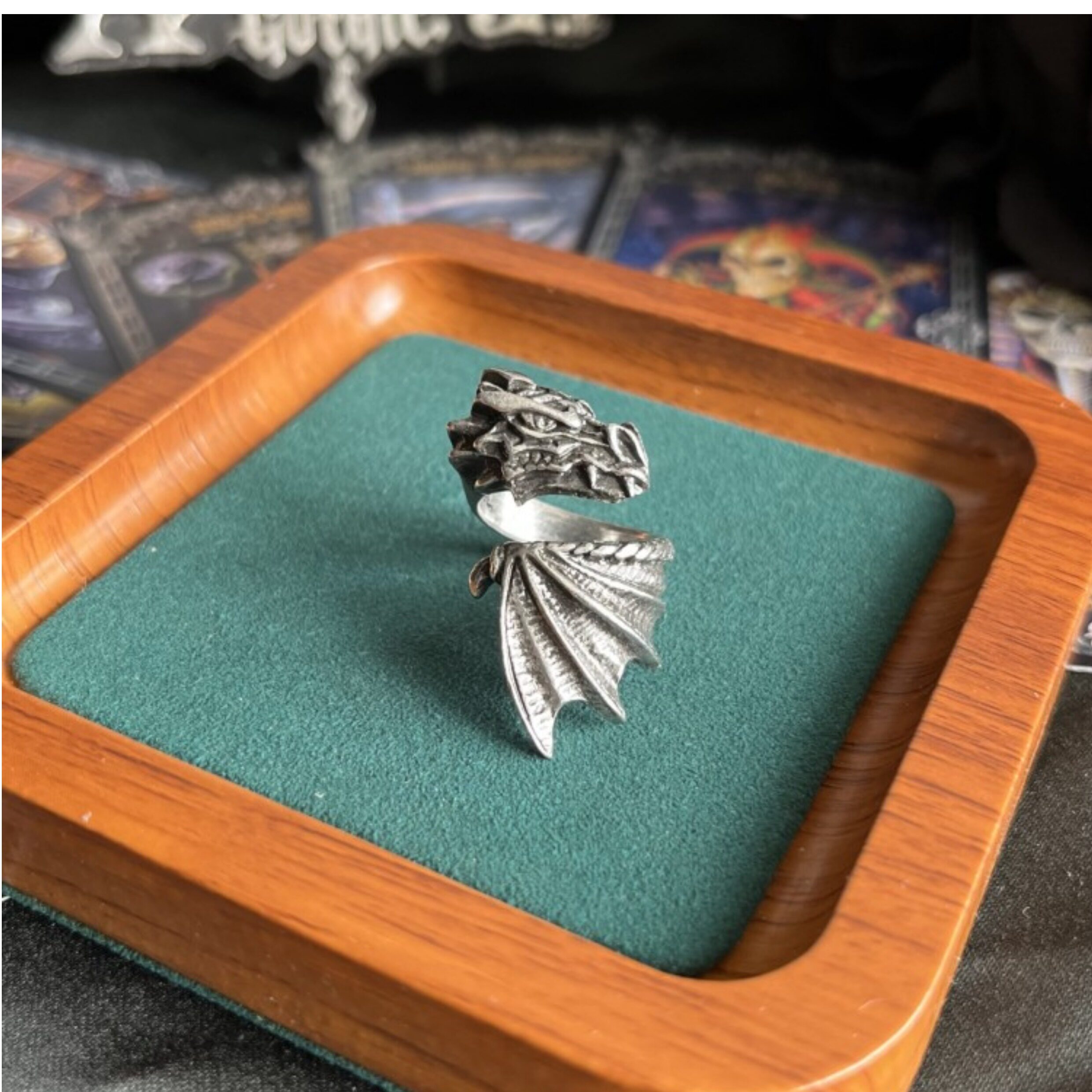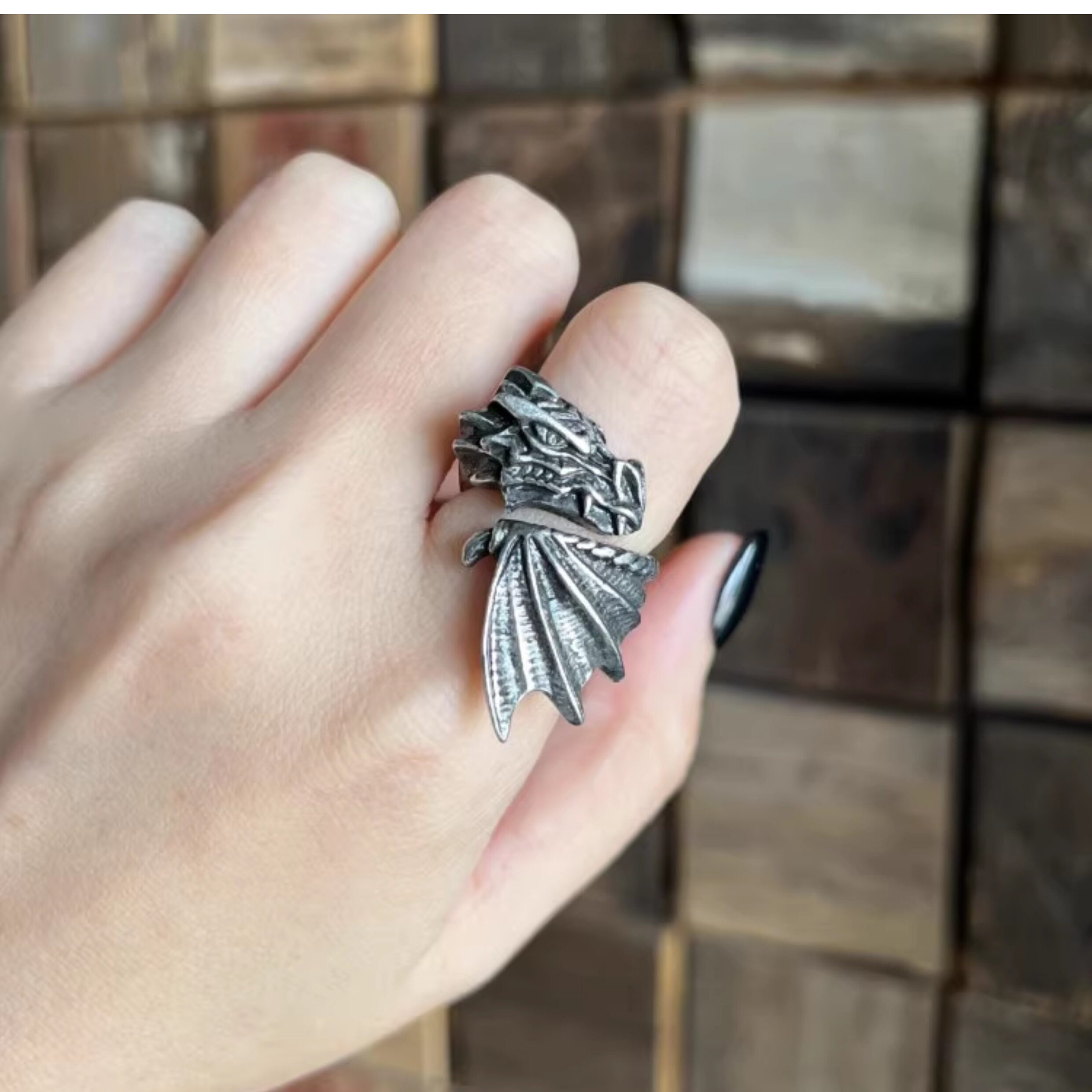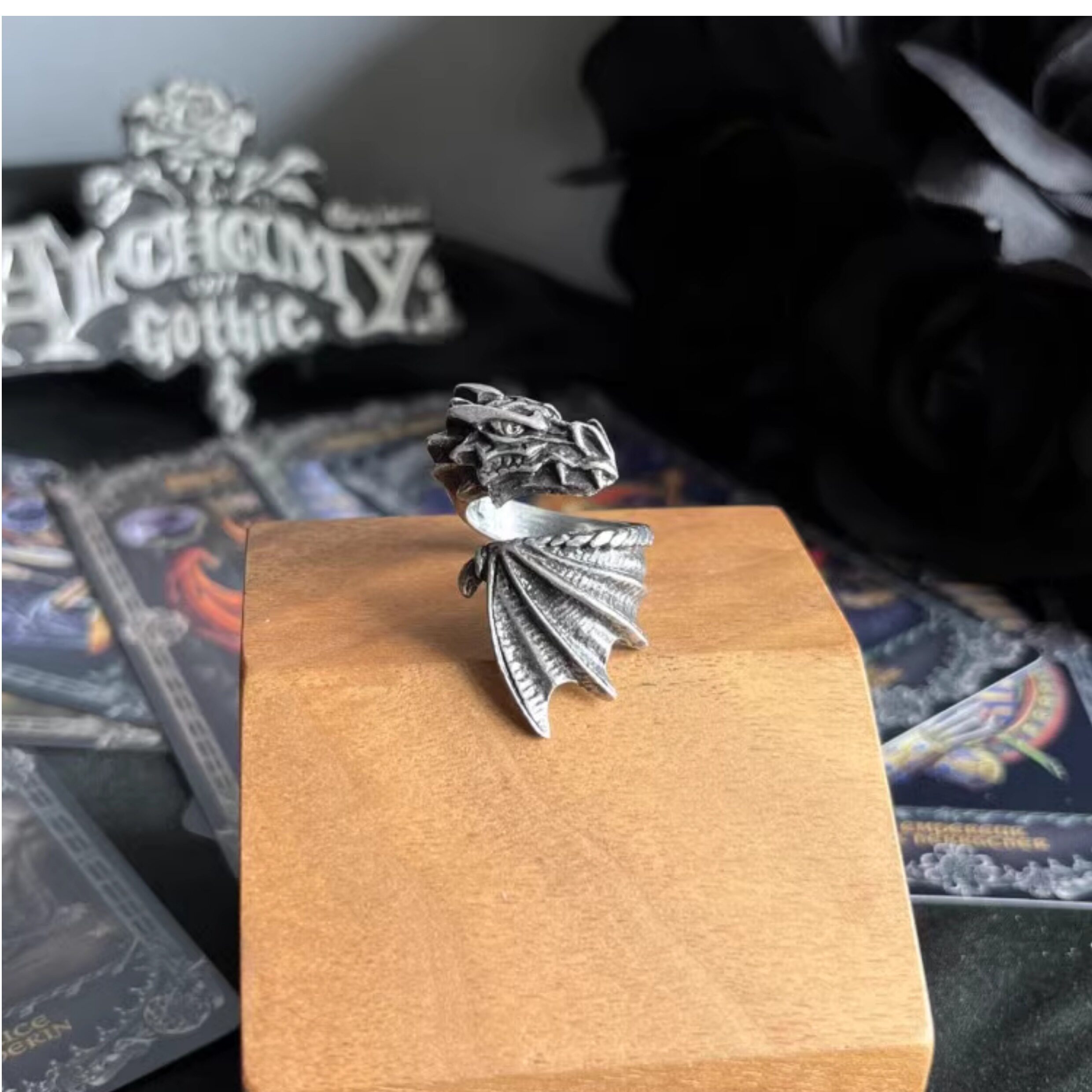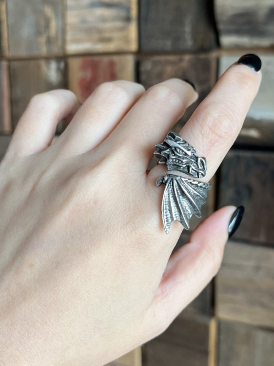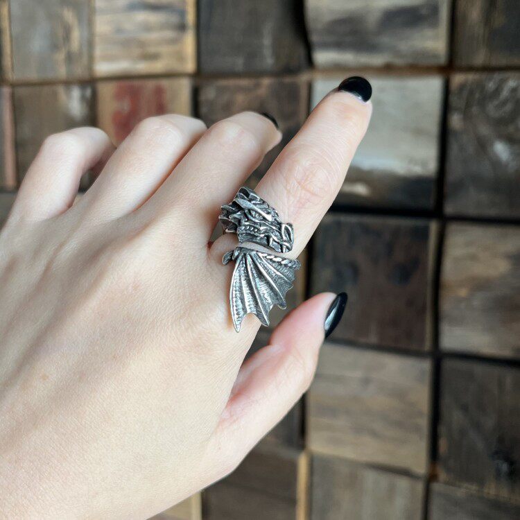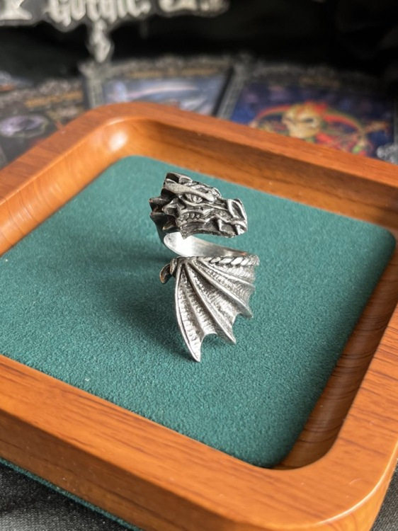 Alchemy Gothic R253 Брендовое готическое темное ретро индивидуальное открытое кольцо с летающим драконом, ювелирное изделие