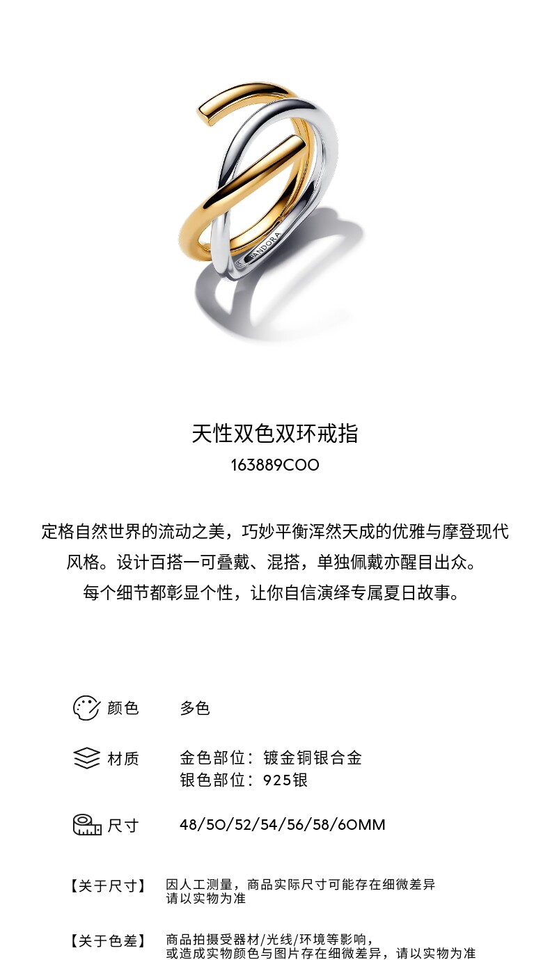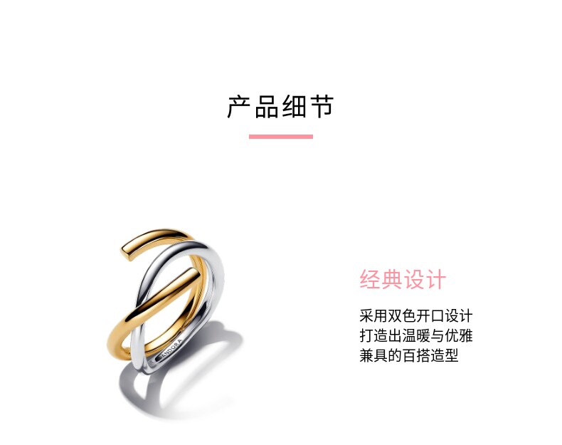 Pandora, двухцветное кольцо, простой и элегантный дизайн
