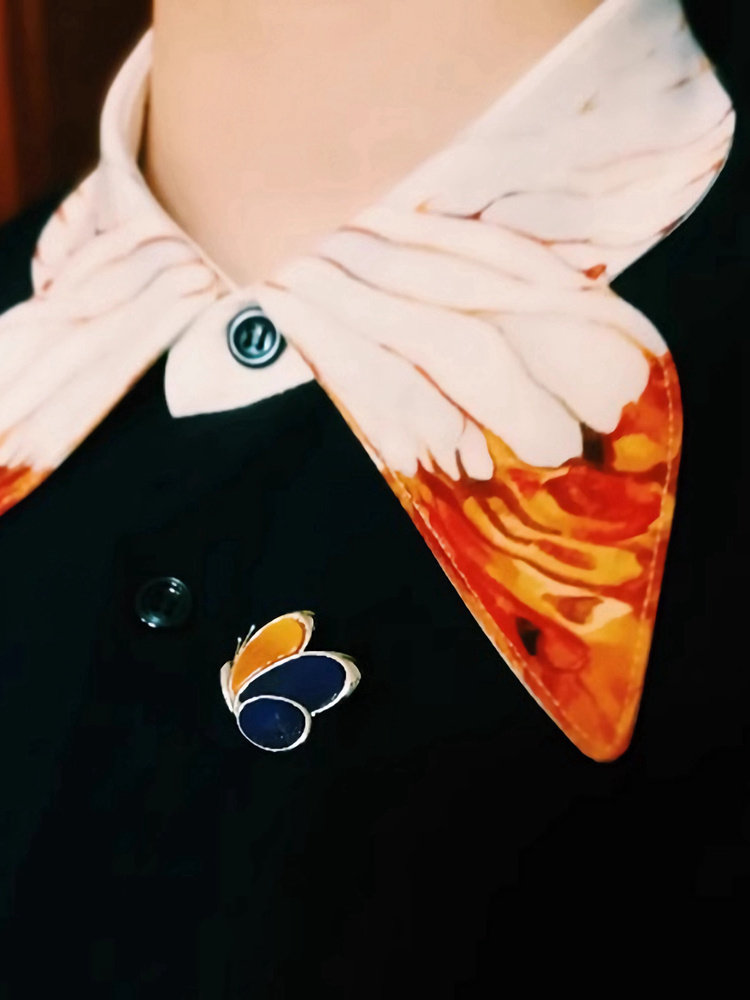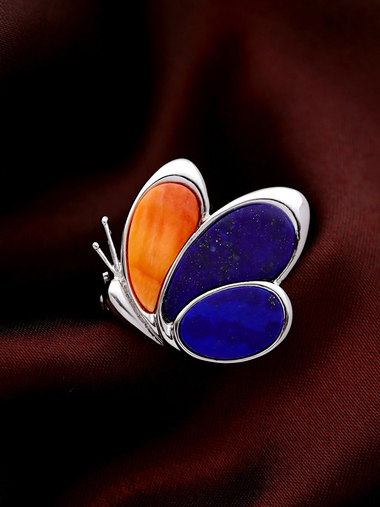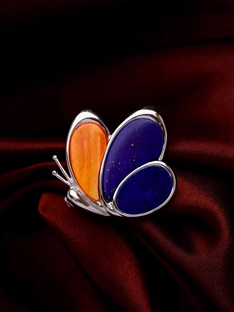 有闲 [Ежедневно днем и ночи] естественный золотой камень хайджику/черная кровать бабочки 925 Серебряная бабочка брошь