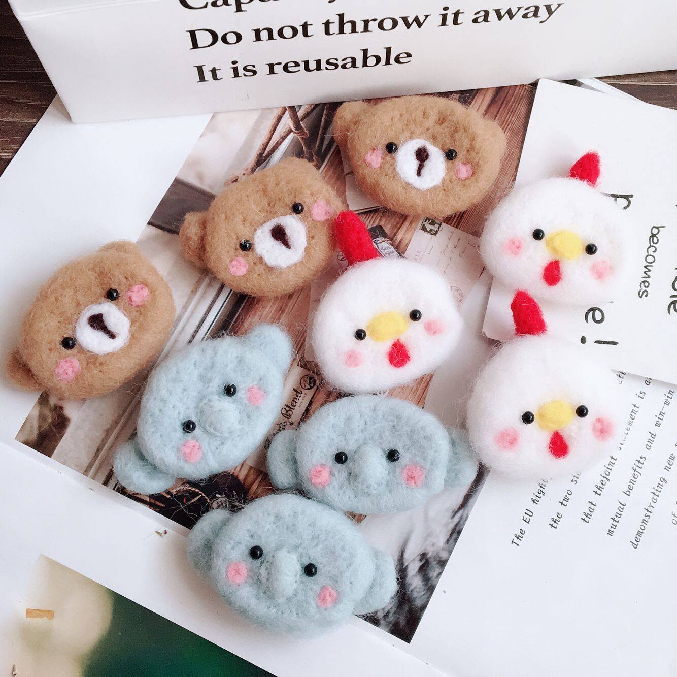 Лицо Мэн ~ шерсть, которая чувствовала себя мультипликационная голова животных, куриные цыпочки, маленькая слона мягкая девочка униформа с грудной иглой без надписей.