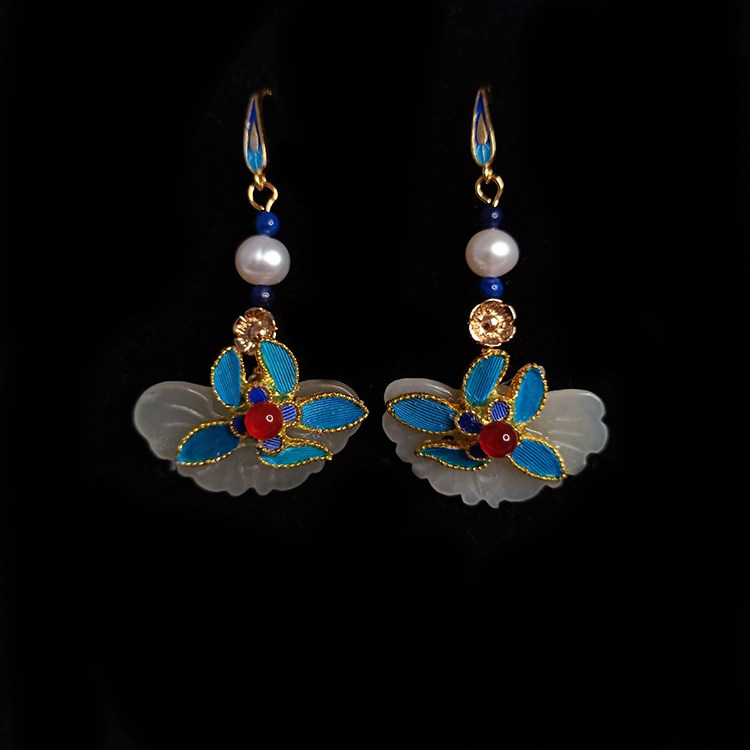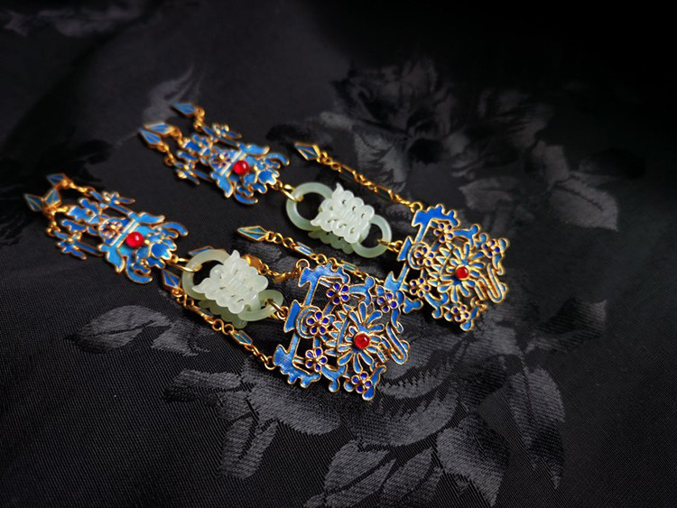 Ципао, антикварные серьги из нефрита, серебро 925 пробы