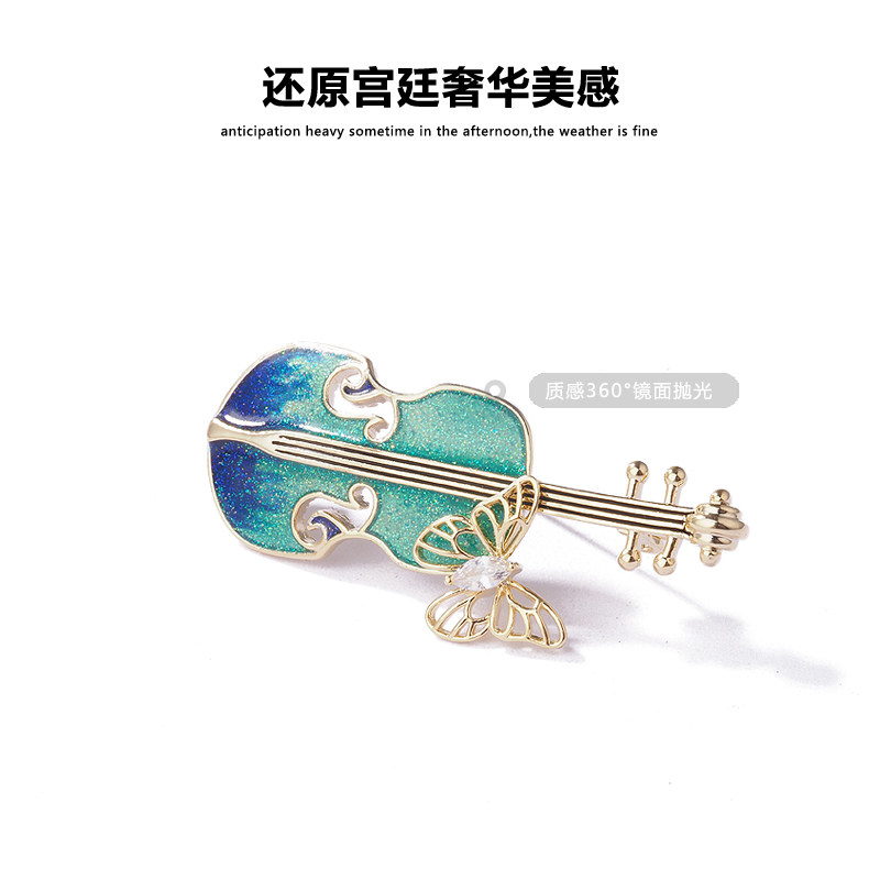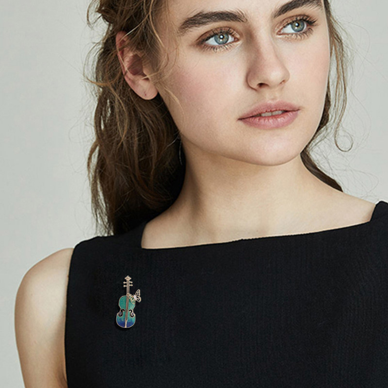 Эмаль, скрипка, брошь