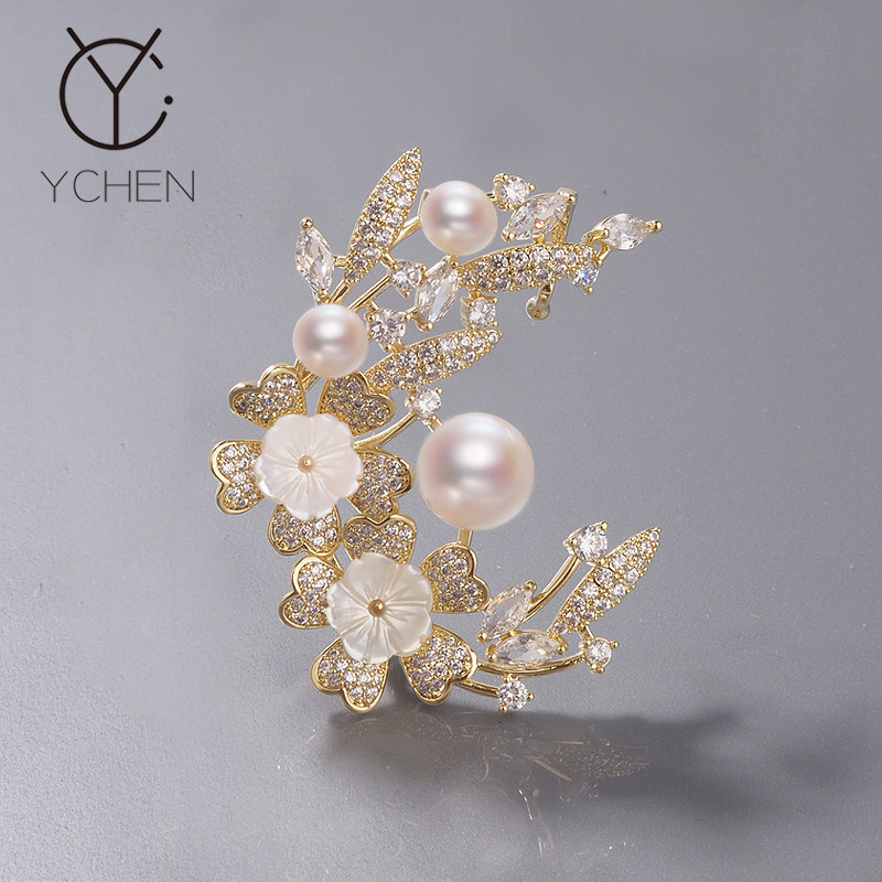 Натуральная высококлассная брошь из жемчуга, элегантная булавка, аксессуар, подарок на день рождения