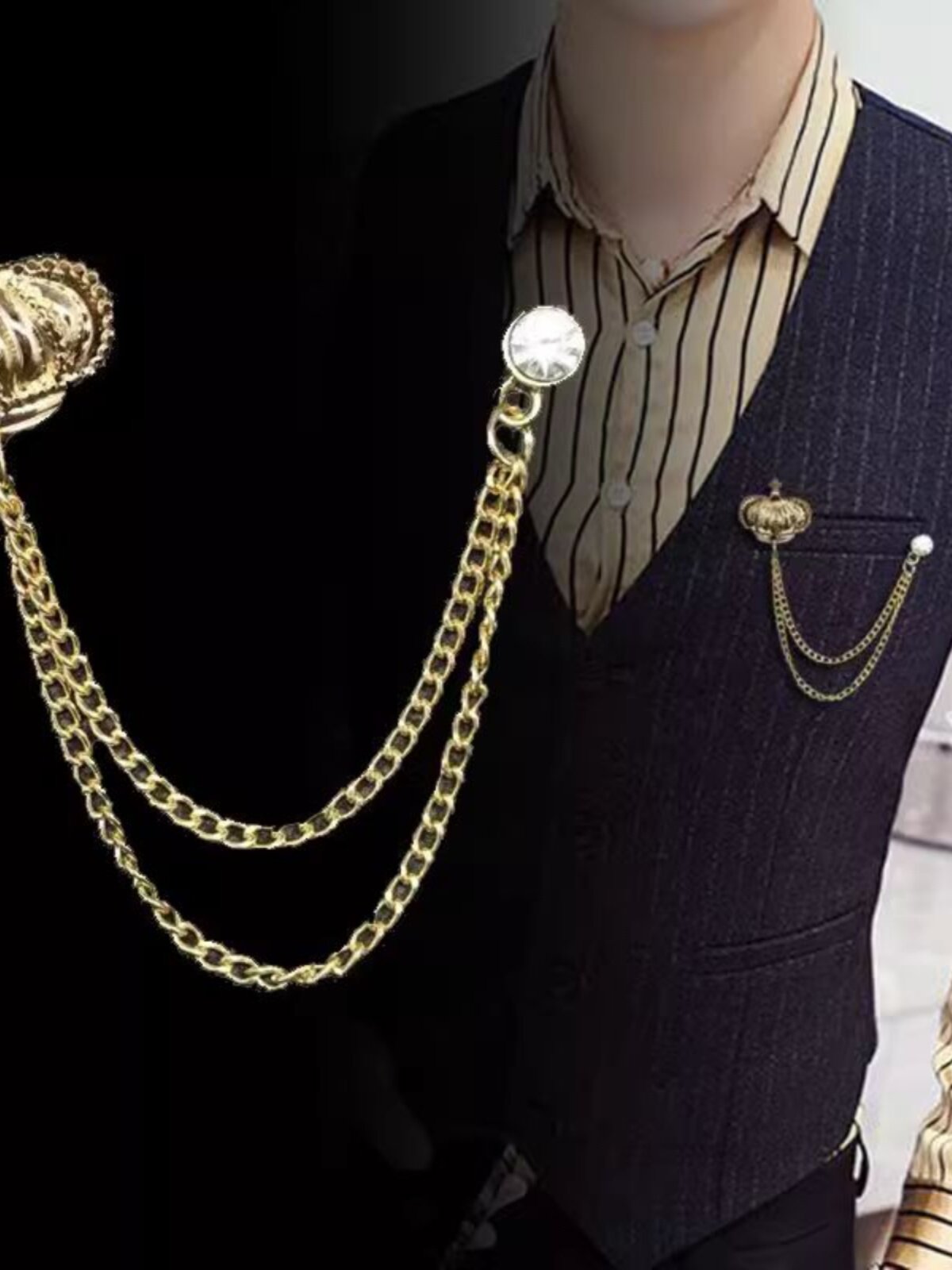 Брошь в английском стиле, металлическая цепь, булавка, пальто на лацкан, в британском стиле