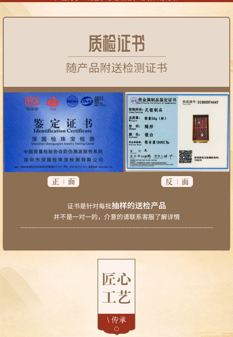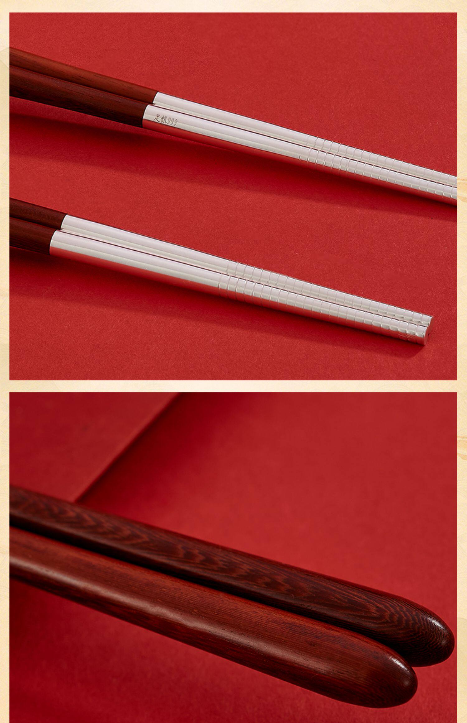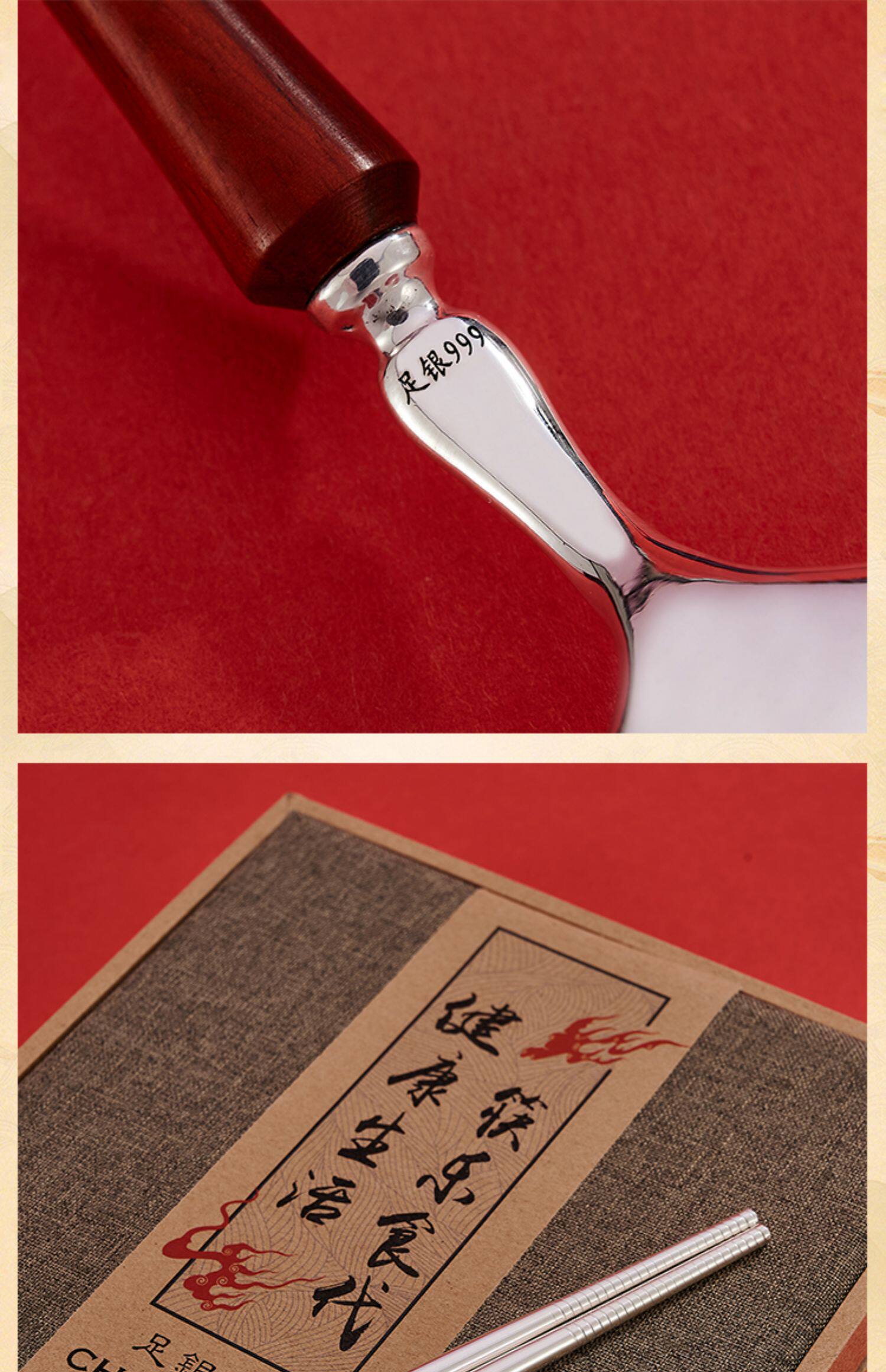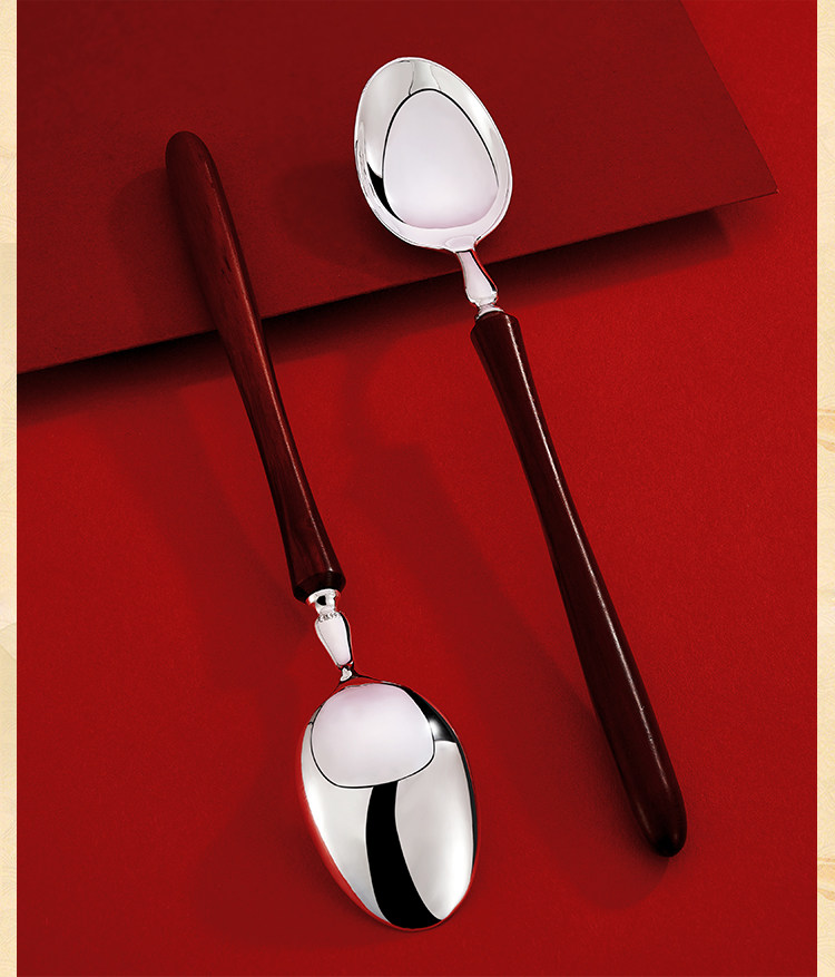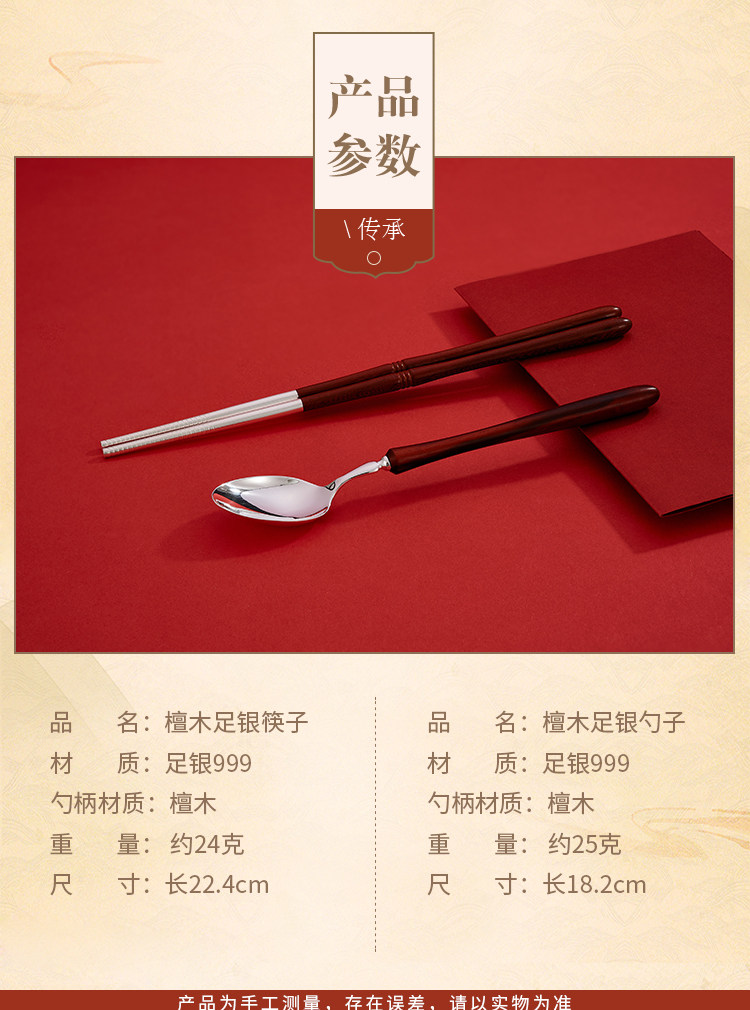 顺钦银楼 Серебряный браслет, палочки для еды, вилка, ложка из сандалового дерева, посуда, комплект, серебро 925 пробы