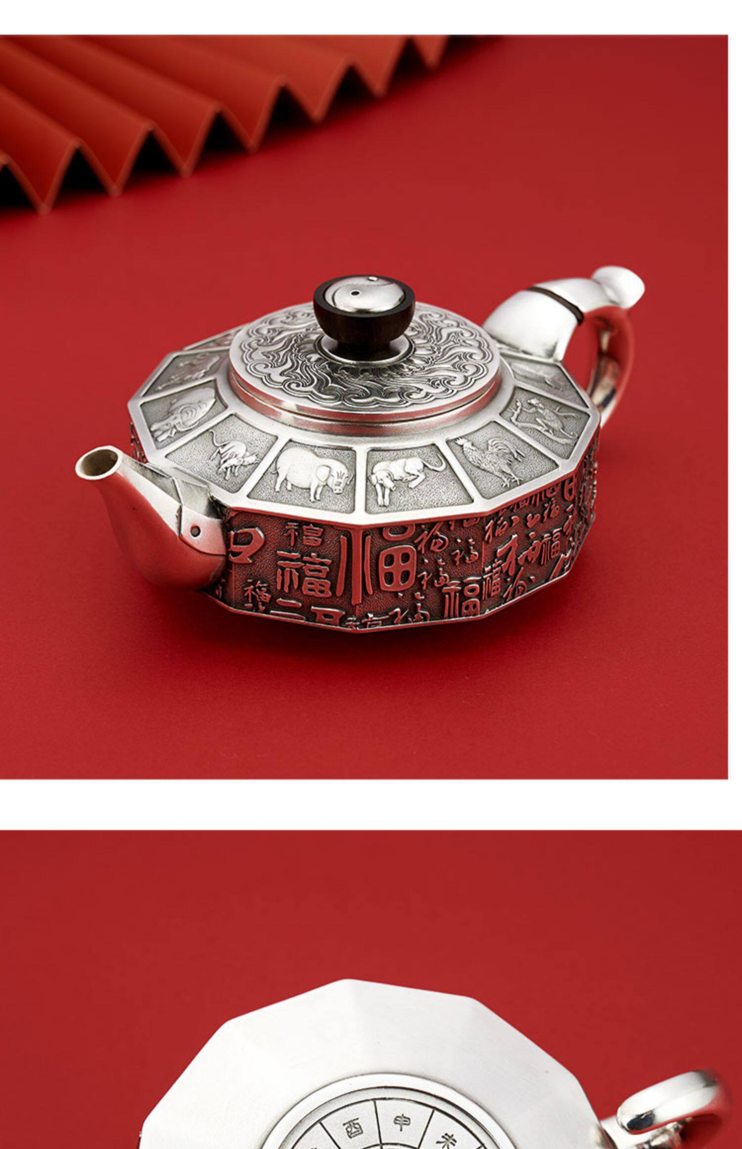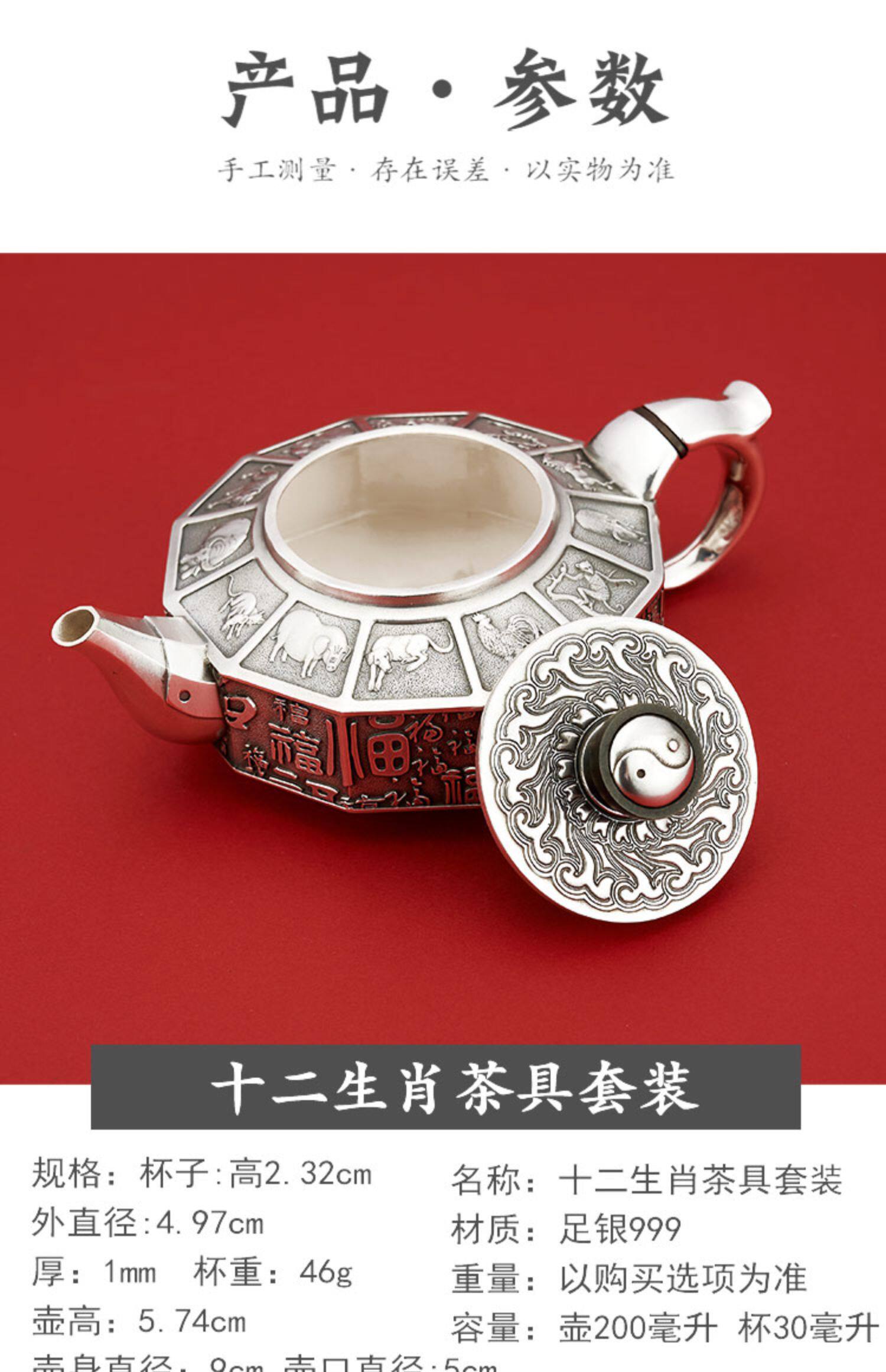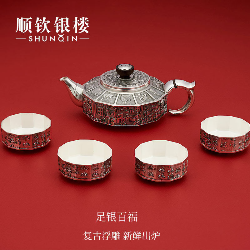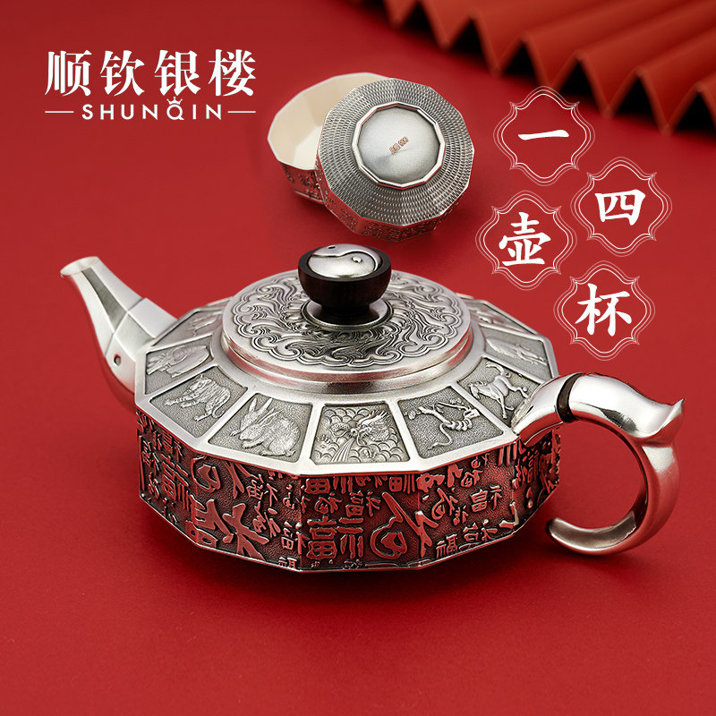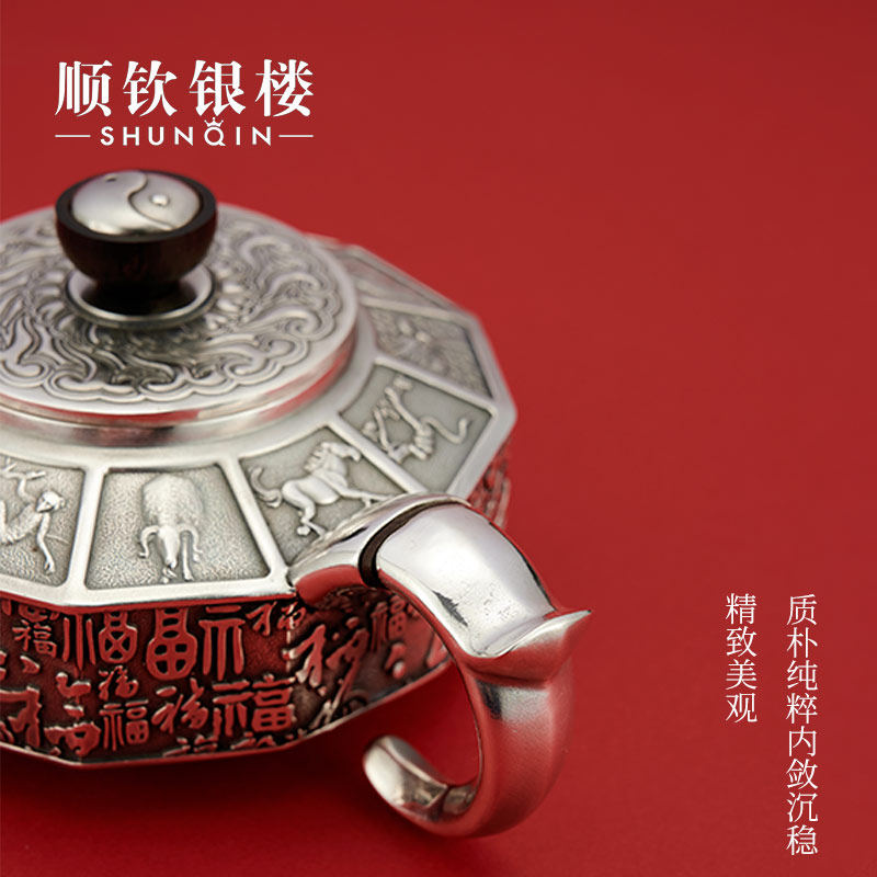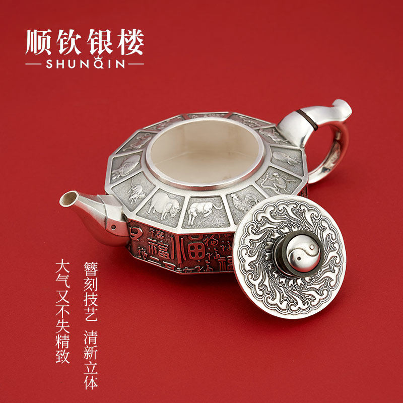 顺钦银楼 Заварочный чайник, комплект, серебро 999 пробы, китайский гороскоп