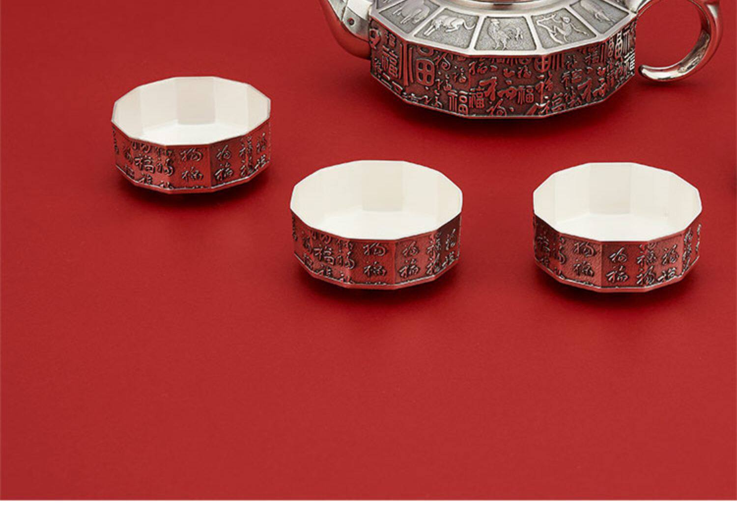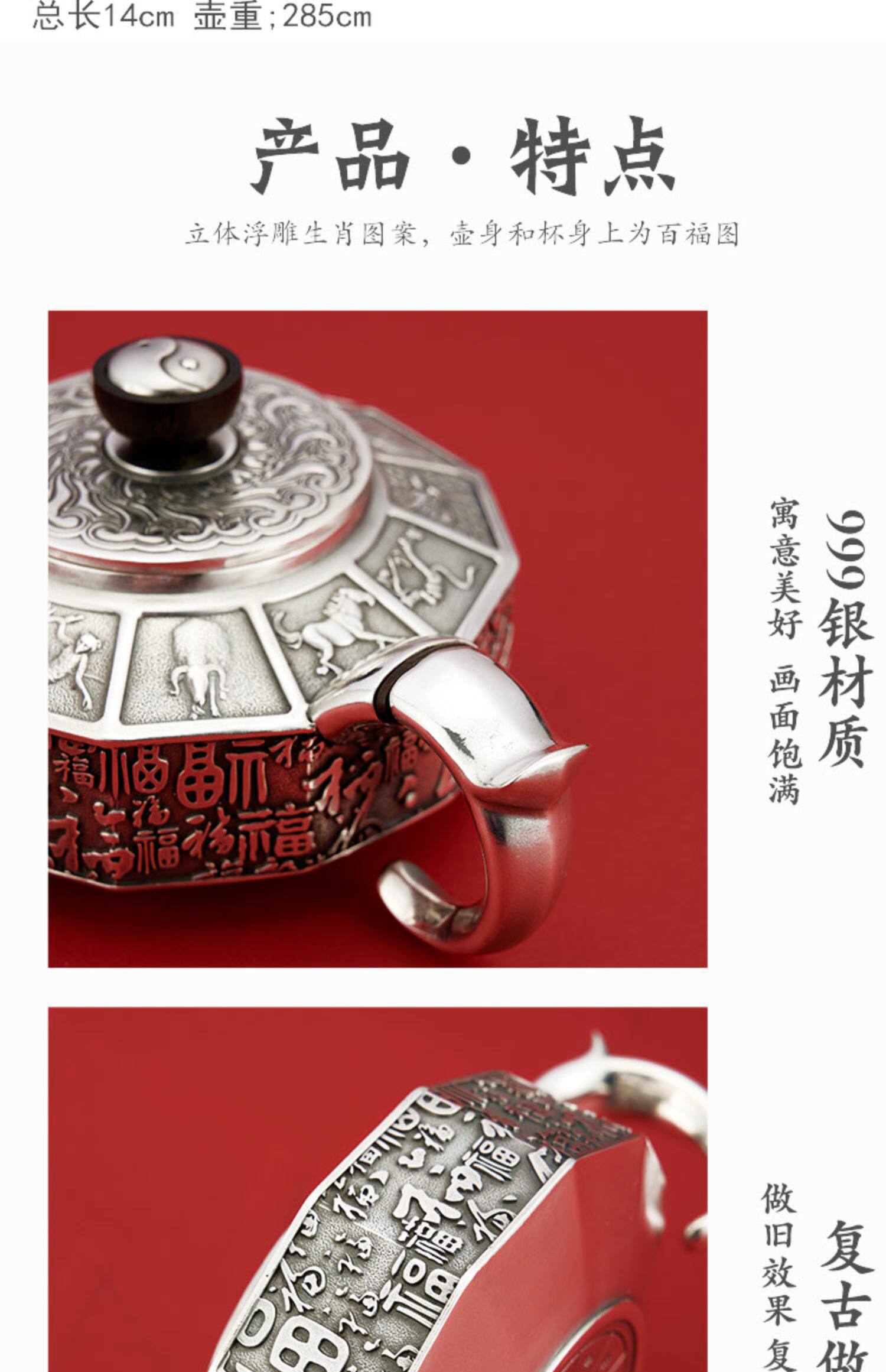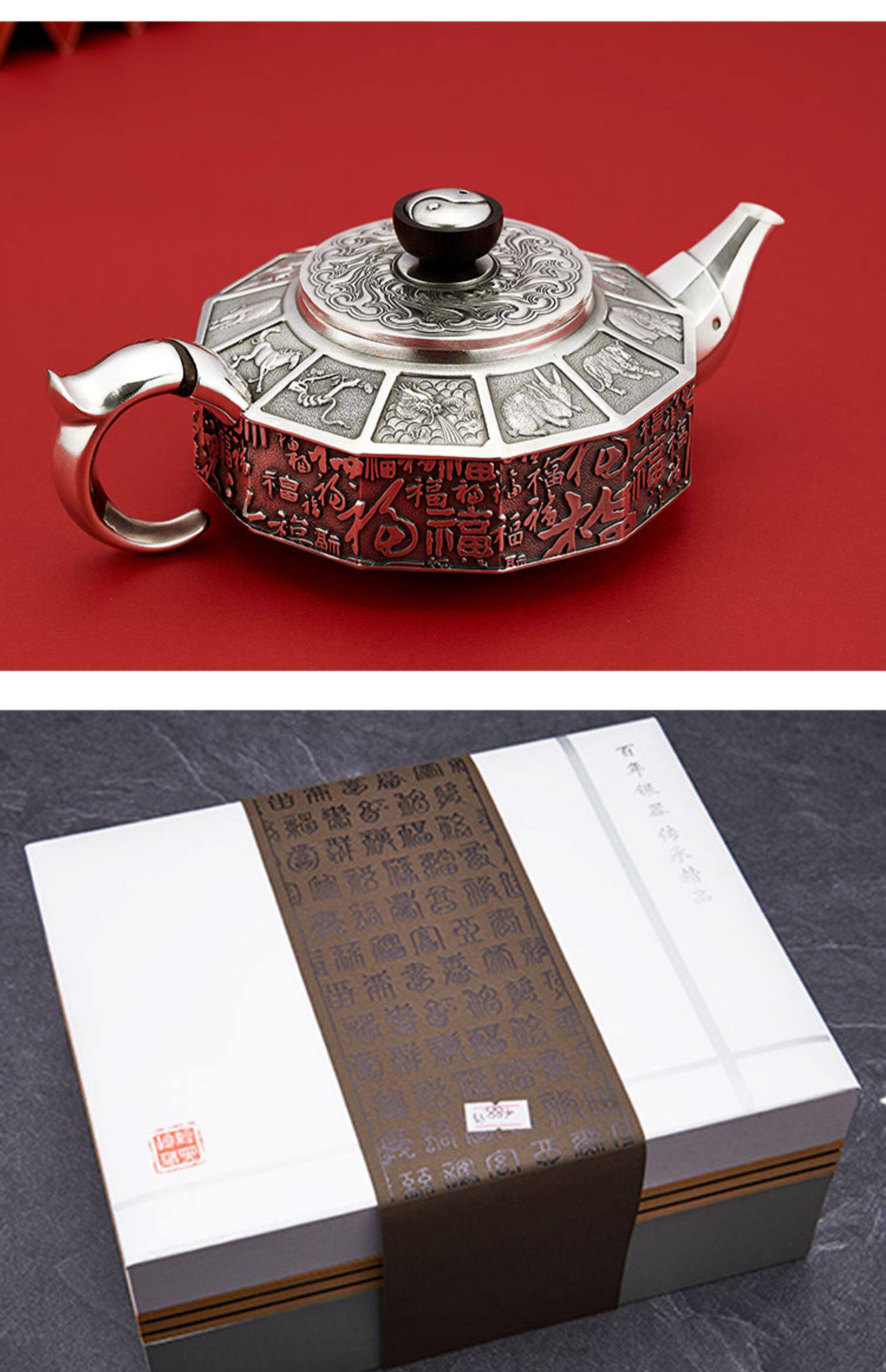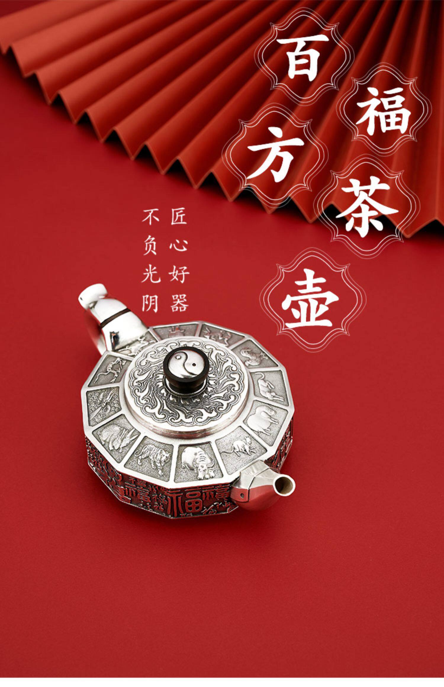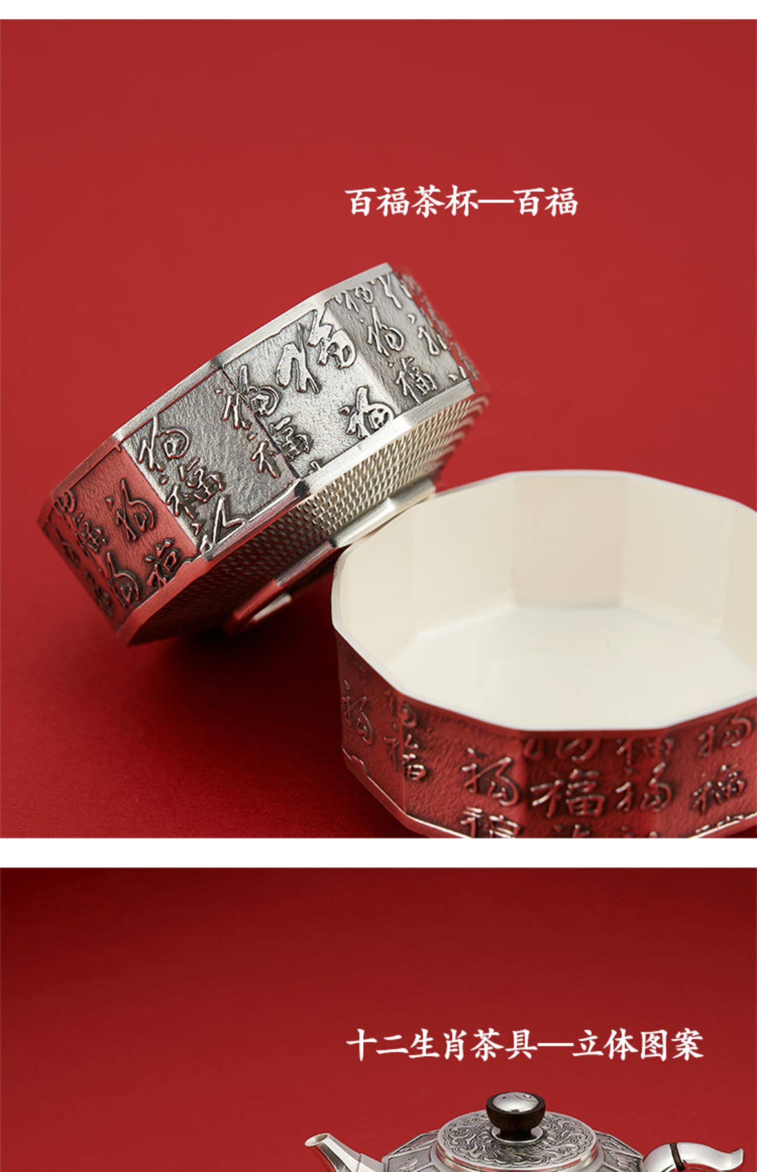 顺钦银楼 Заварочный чайник, комплект, серебро 999 пробы, китайский гороскоп