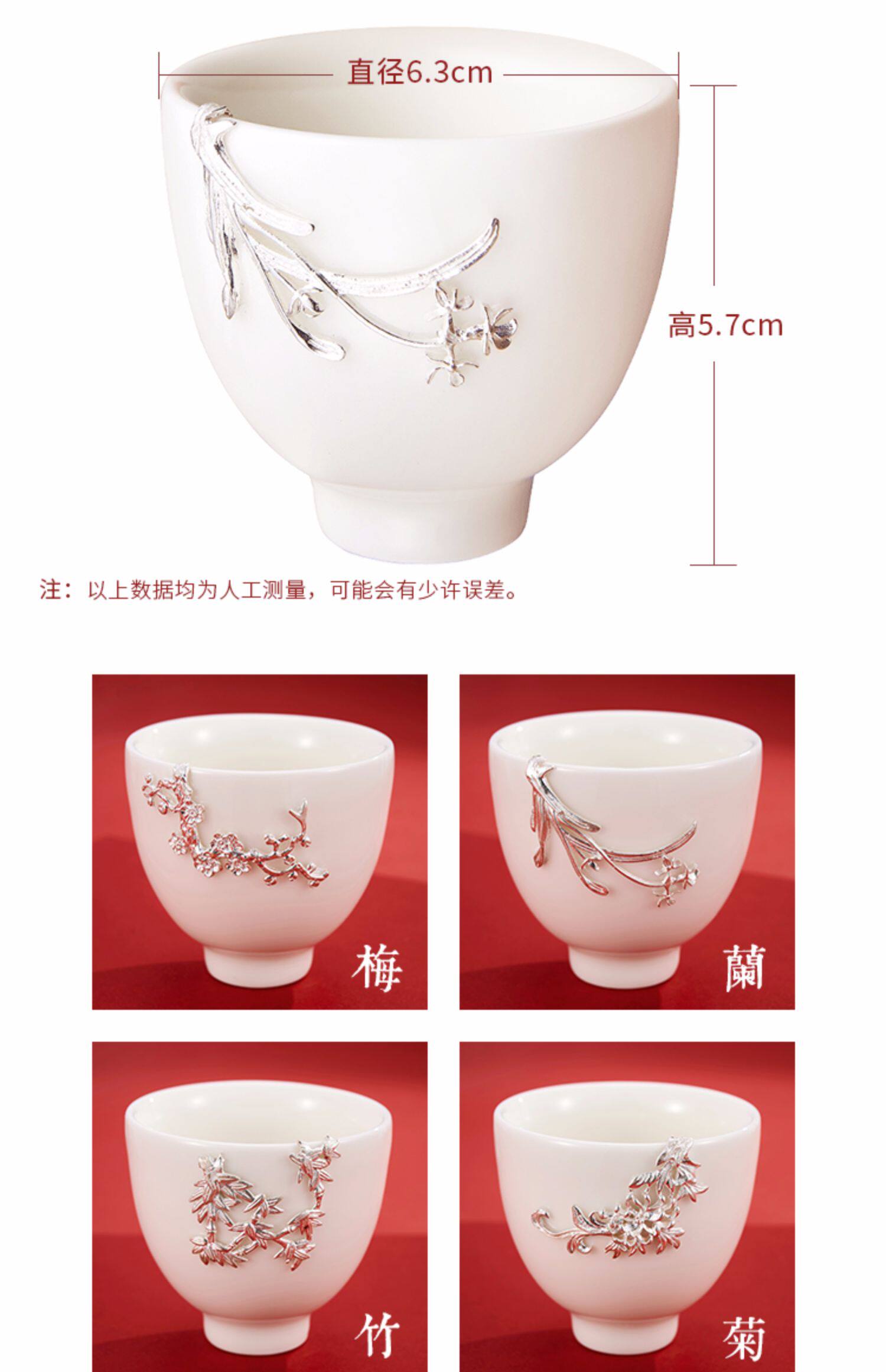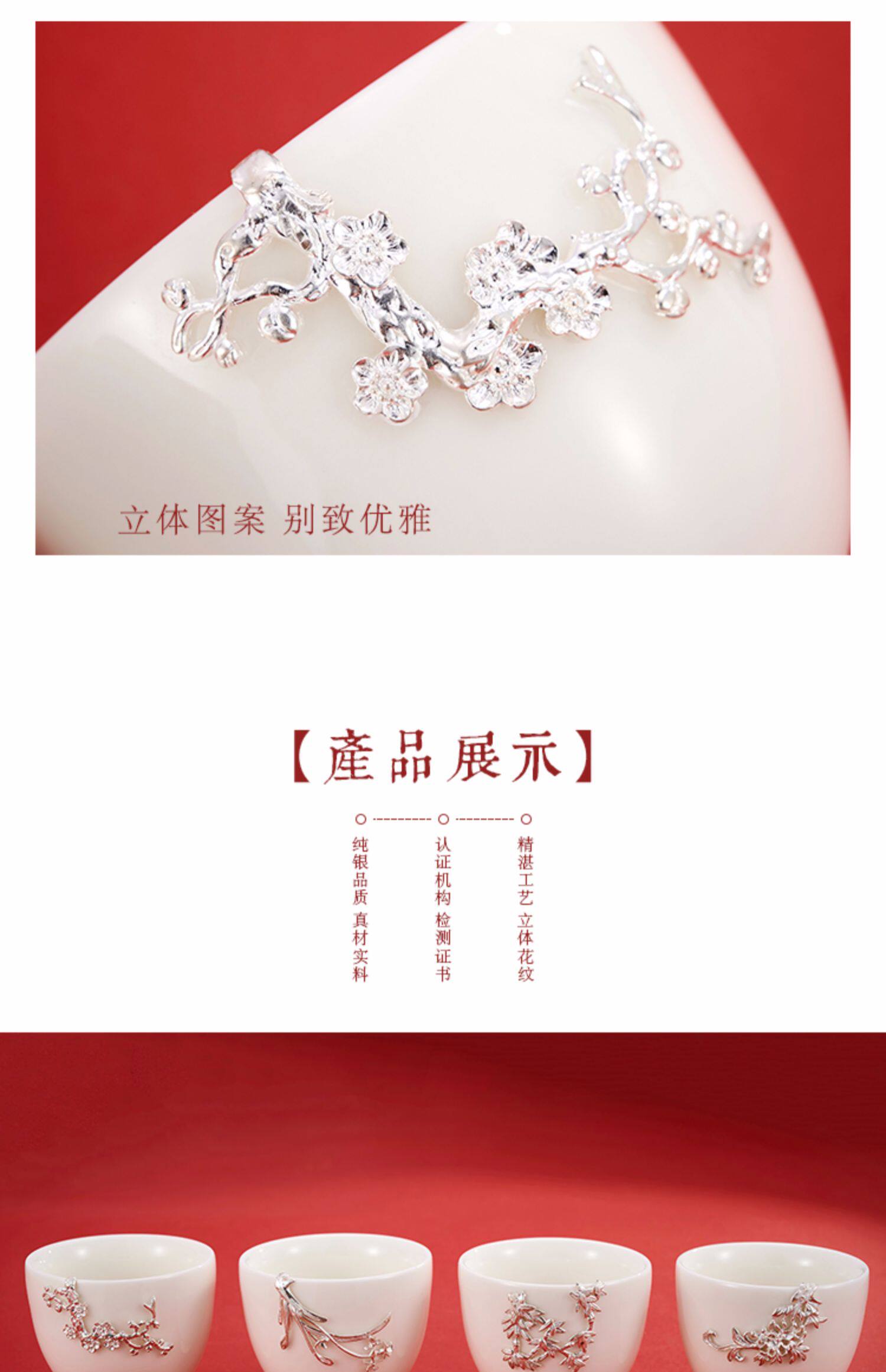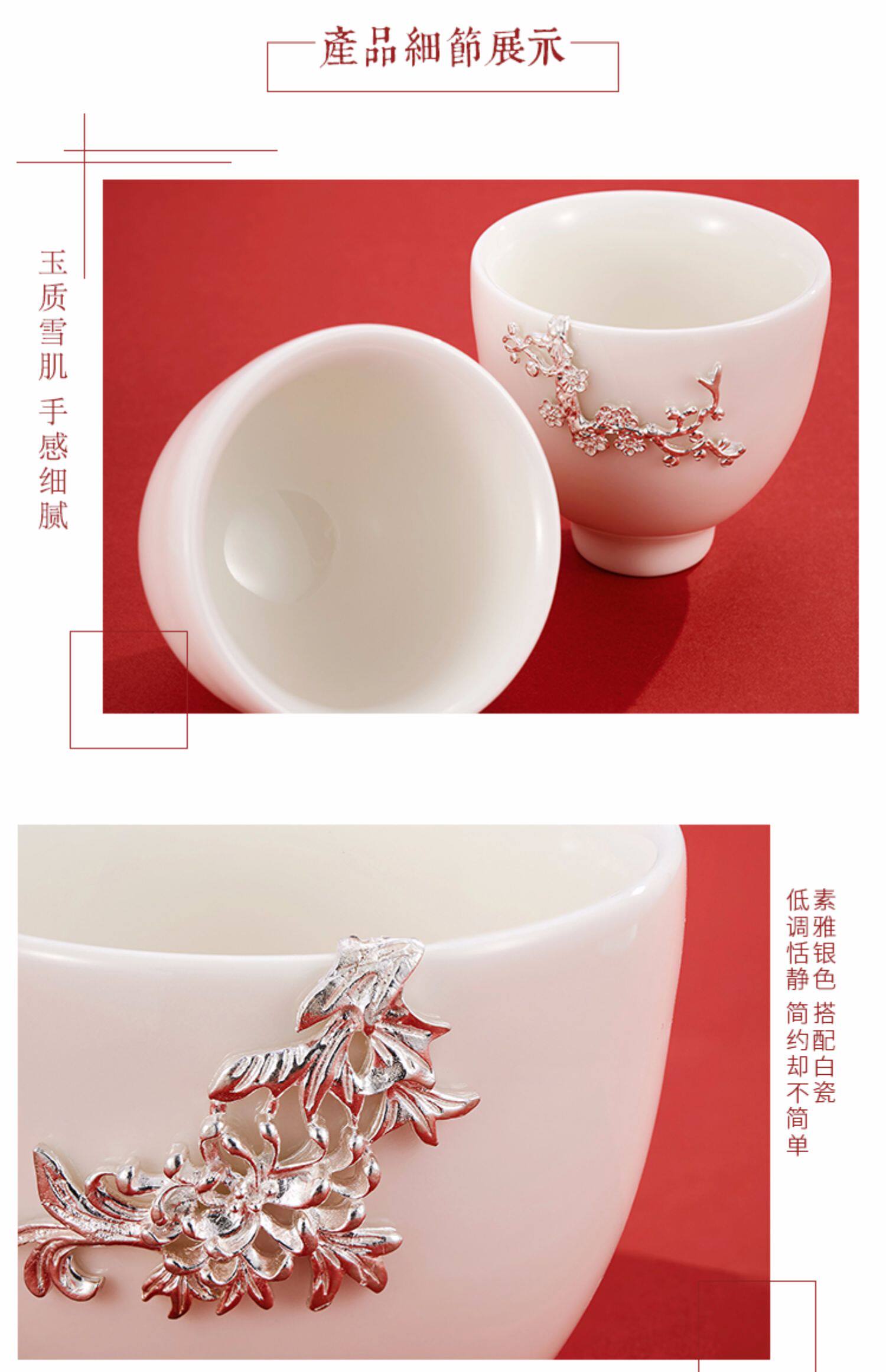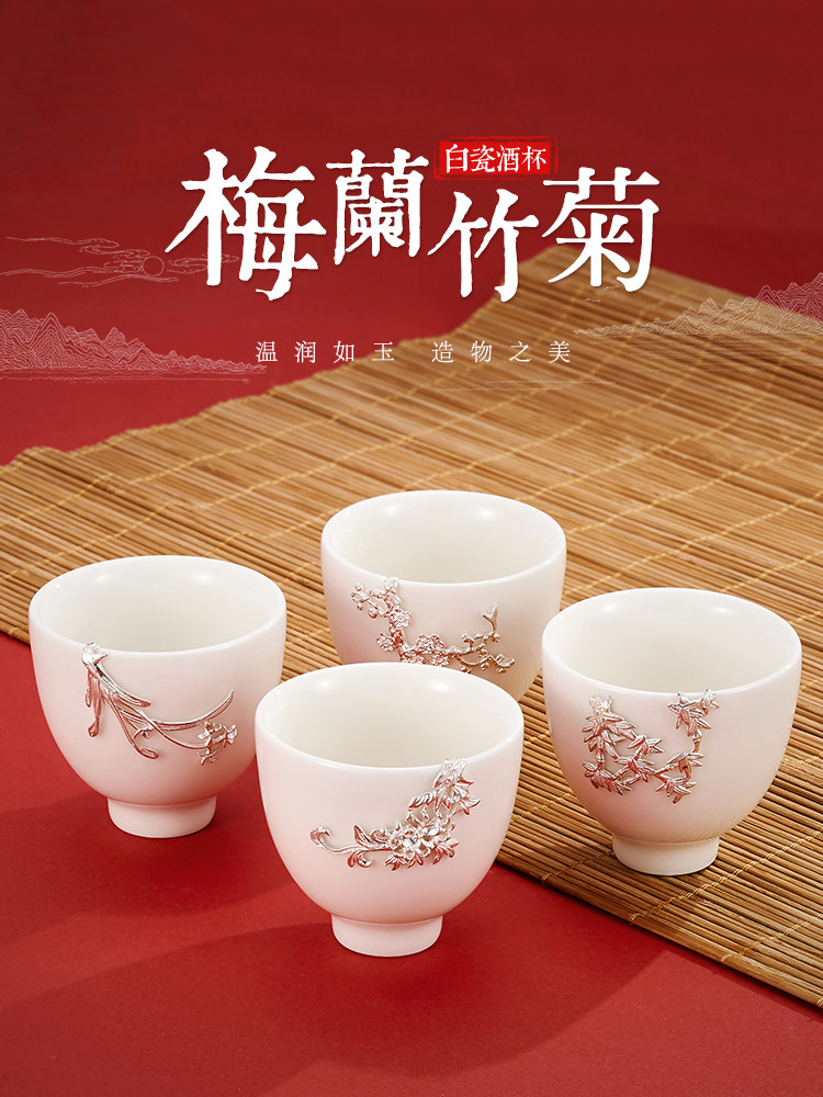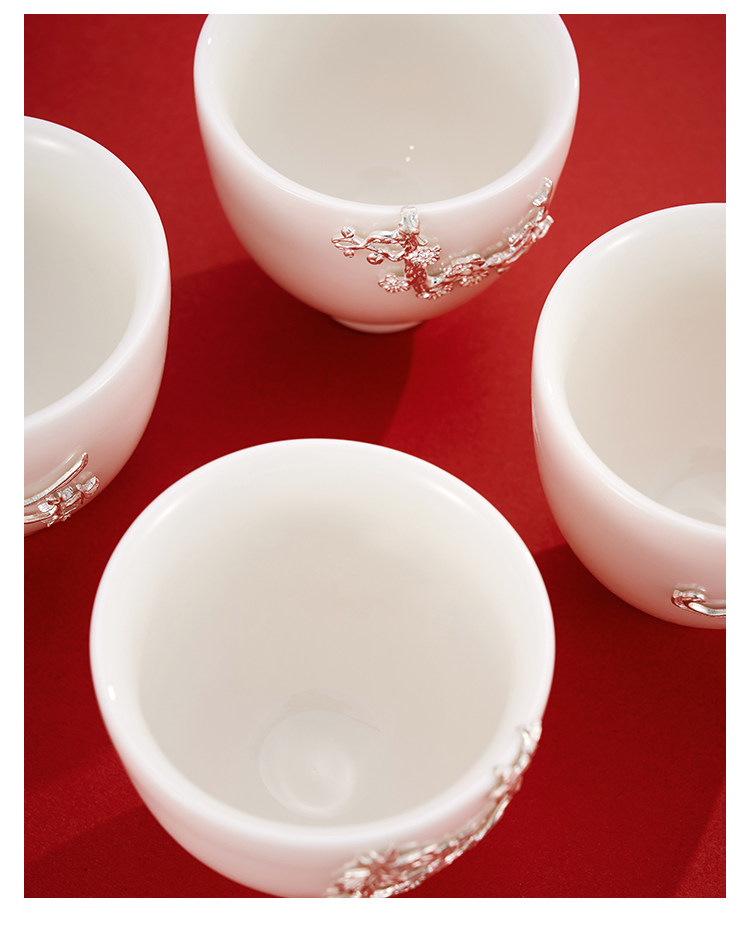 顺钦银楼 Серебряный браслет, инкрустация камня из белого нефрита, фарфоровая высококлассная чайная чашка, подарок на день рождения