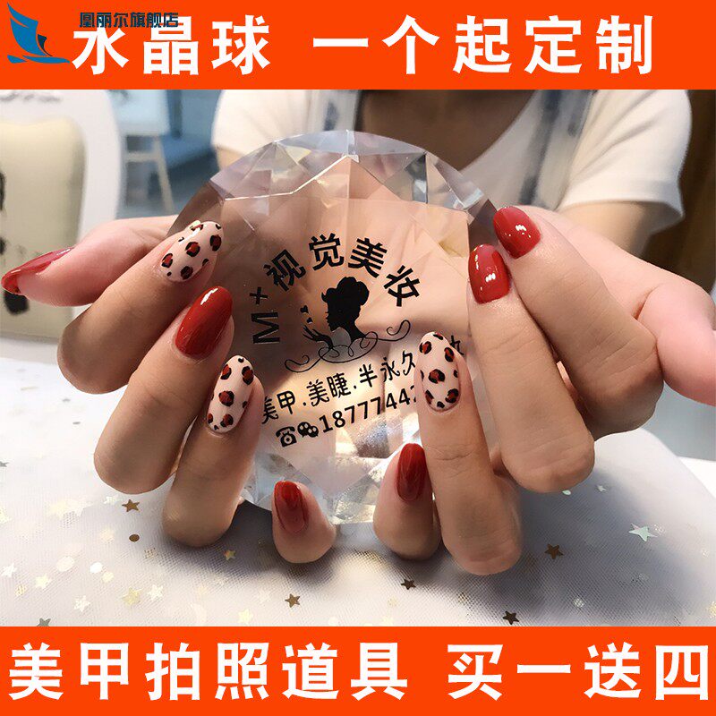 Держа в руке хрустальный шар в качестве фотореквизита для маникюрного салона, держа декоративный стеклянный шар с креативным большим бриллиантом и настраиваемой гравировкой ЛОГОТИПА.