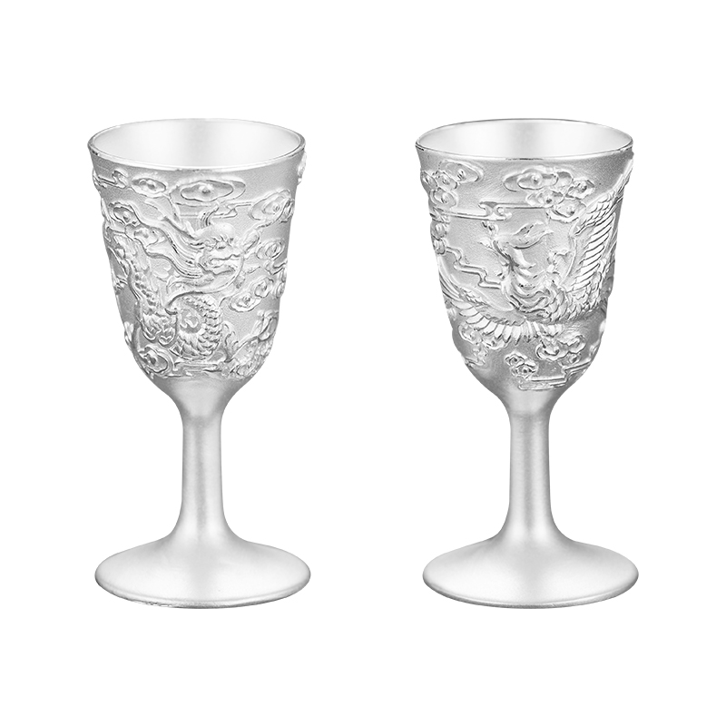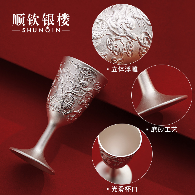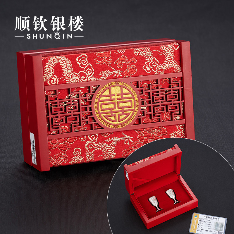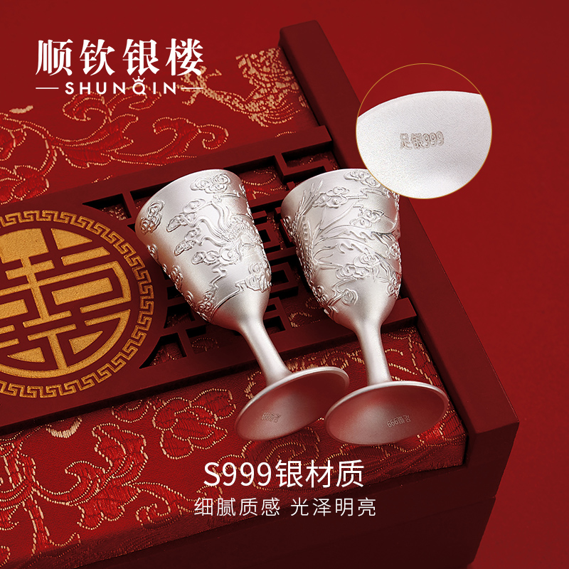 顺钦银楼 999 футов Серебряный дракон и Феникс Ченгсин Брак Оплаченный Кубок Серебряное серебряное вино подарок для женитьбы на новичках