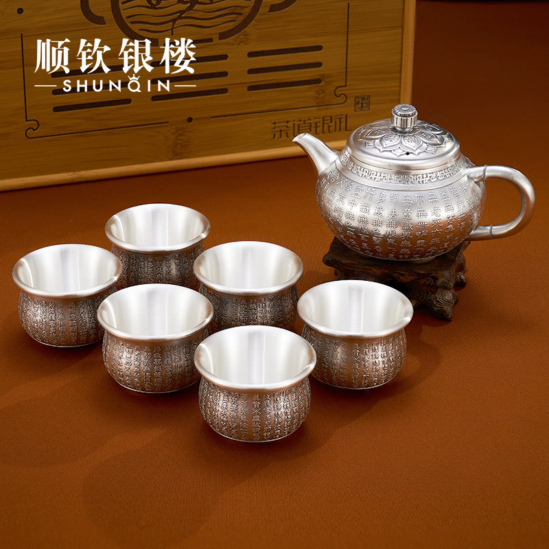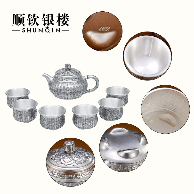 顺钦银楼 Серебряный браслет, чайный сервиз, комплект, заварочный чайник, серебро 925 пробы