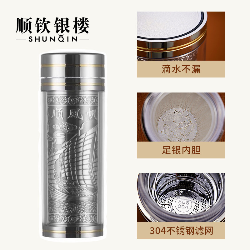 顺钦银楼 Ретро очиститель для серебра, вкладыш, стакан, чай, портативная чайная чашка для домашнего использования, серебро 999 пробы, серебро 925 пробы