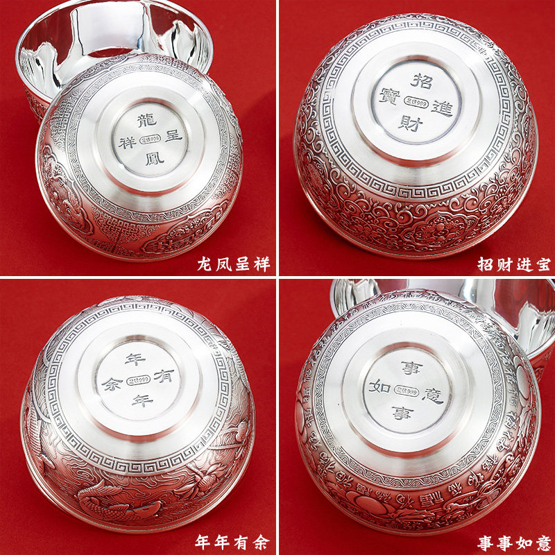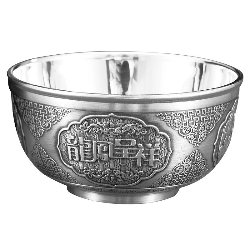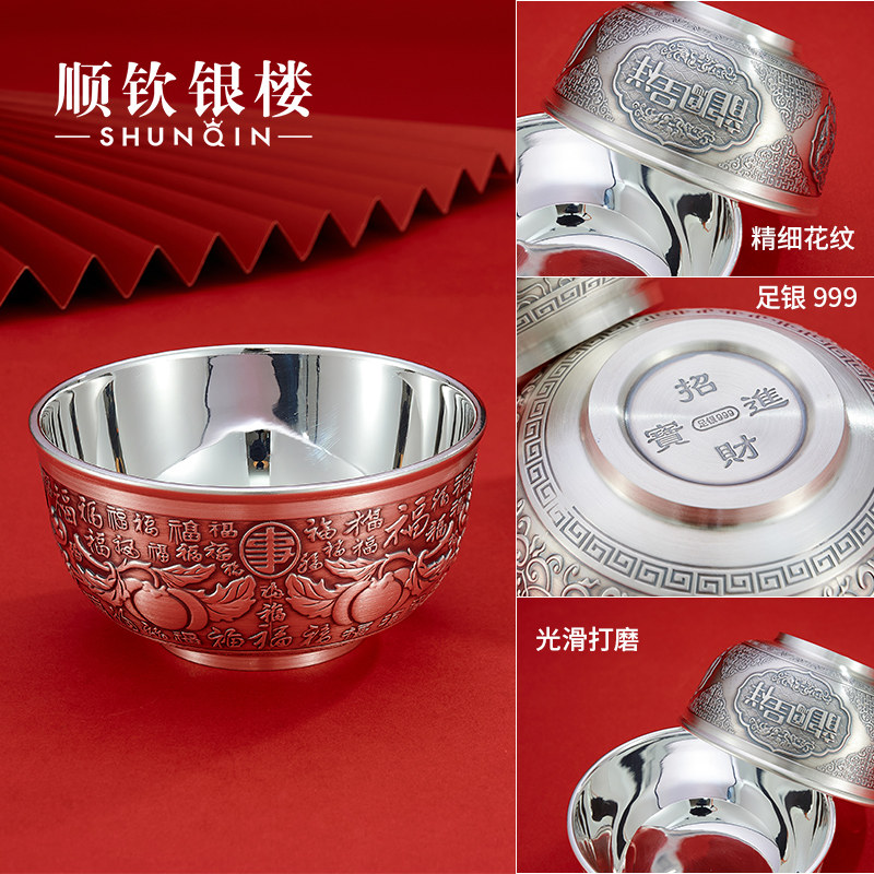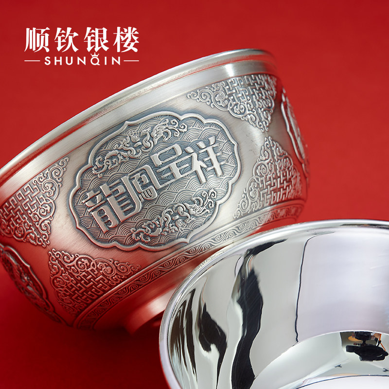 顺钦银楼 Серебряный браслет, двухэтажная посуда, дракон и феникс, серебро 925 пробы