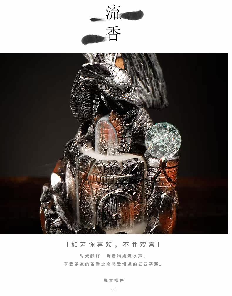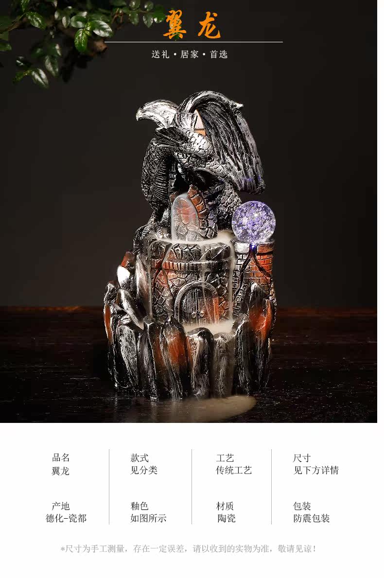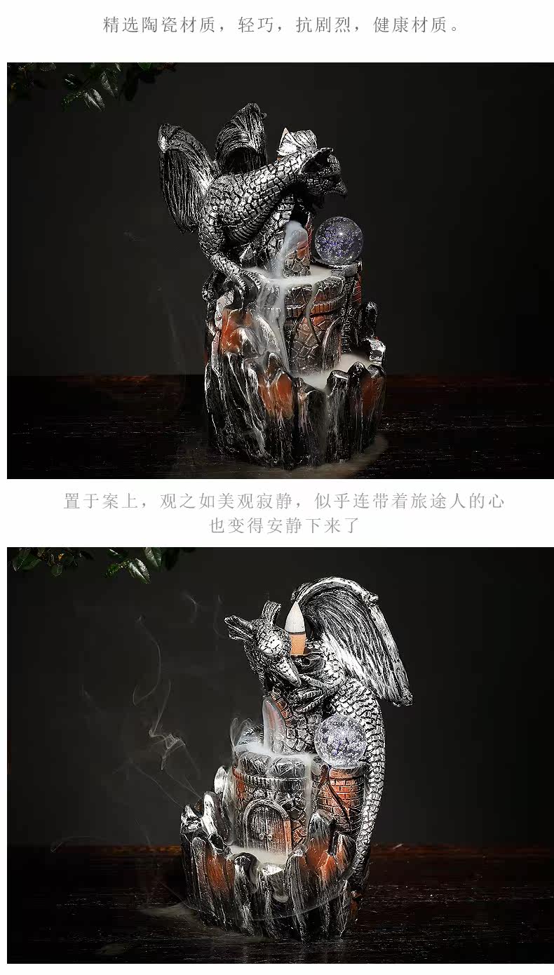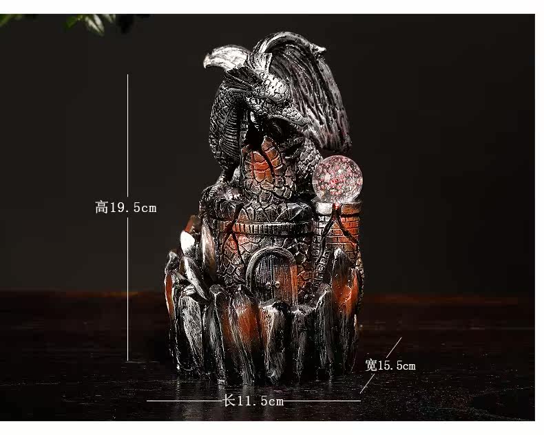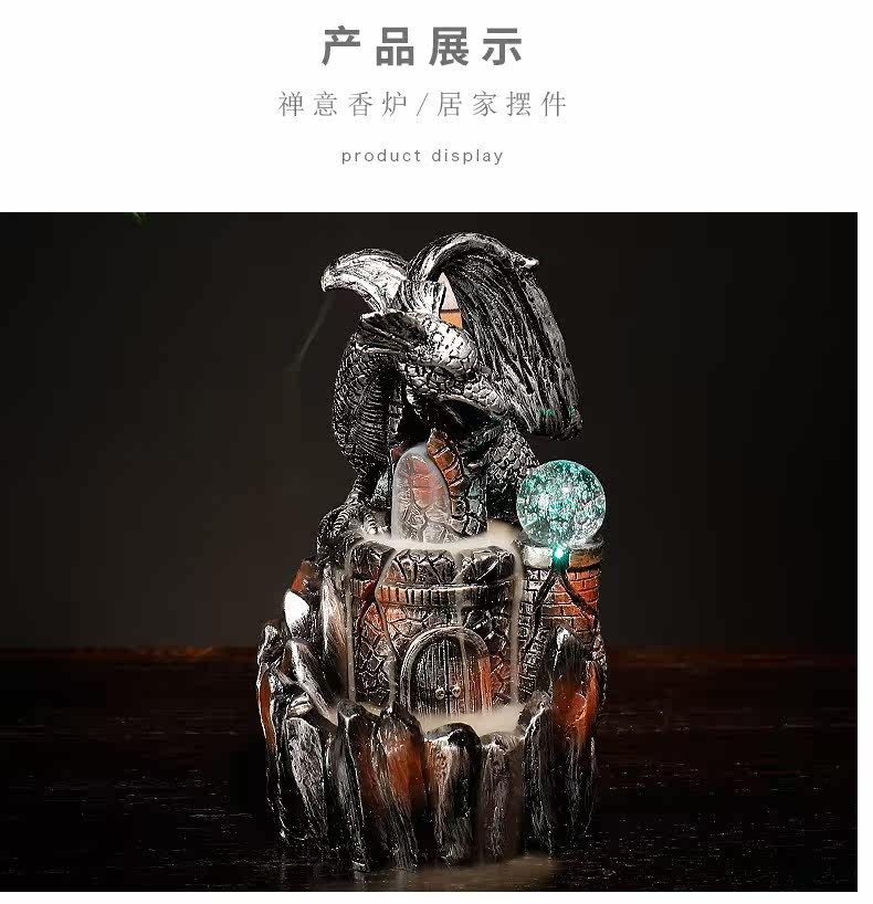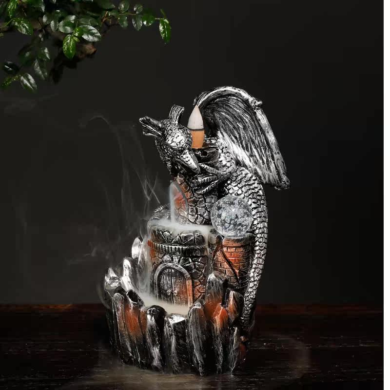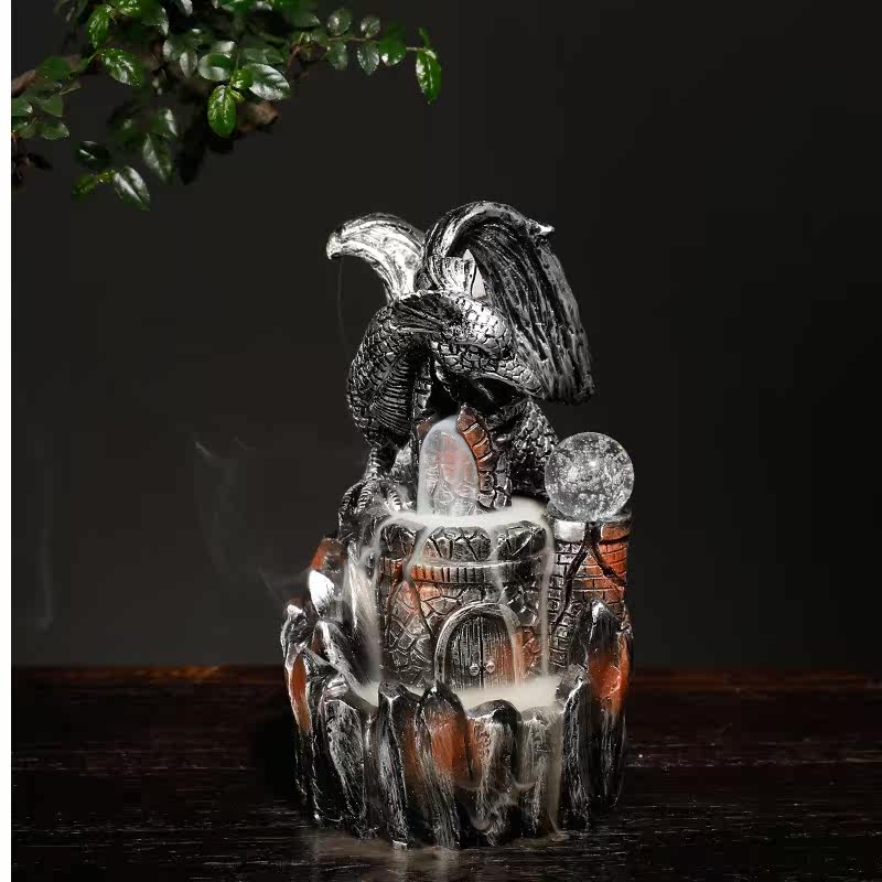 Курильница с обратным потоком из смолы, европейский стиль, птерозавр, светодиодная лампа, обратная дымовая горелка для ароматерапии, ремесленные украшения