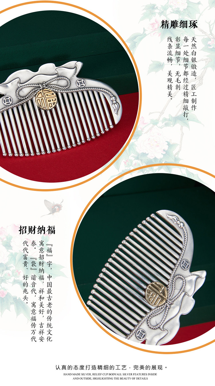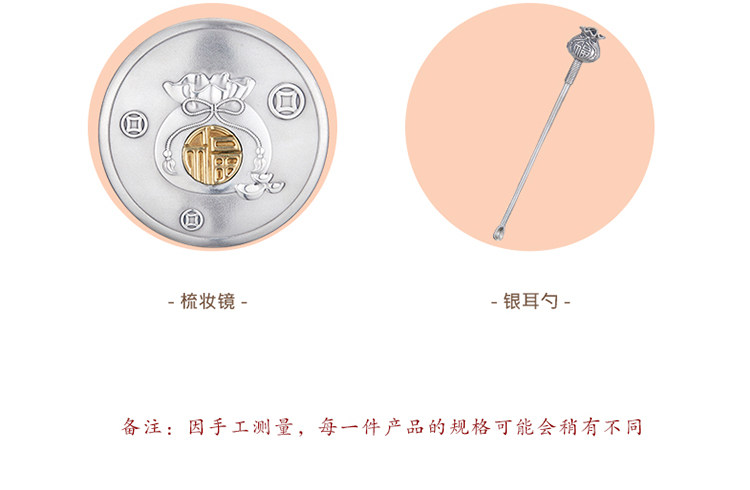 顺钦银楼 Расческа, зеркало, ухочистка, комплект на день матери, серебро 999 пробы, подарок на день рождения
