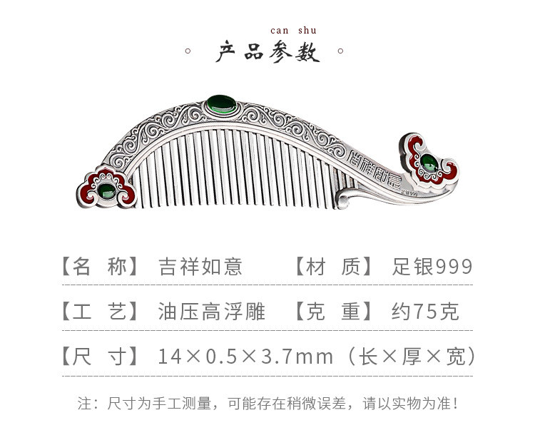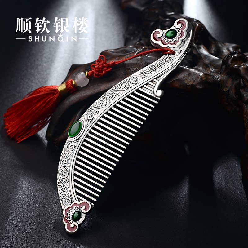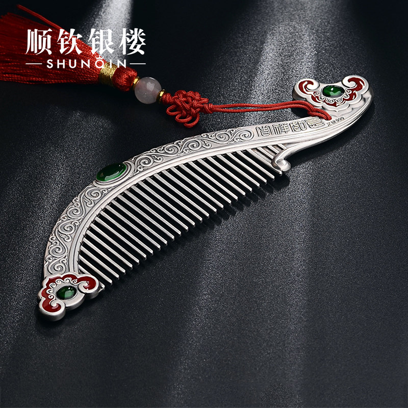 顺钦银楼 Расческа, аксессуар для волос, серебро 999 пробы, подарок на день рождения