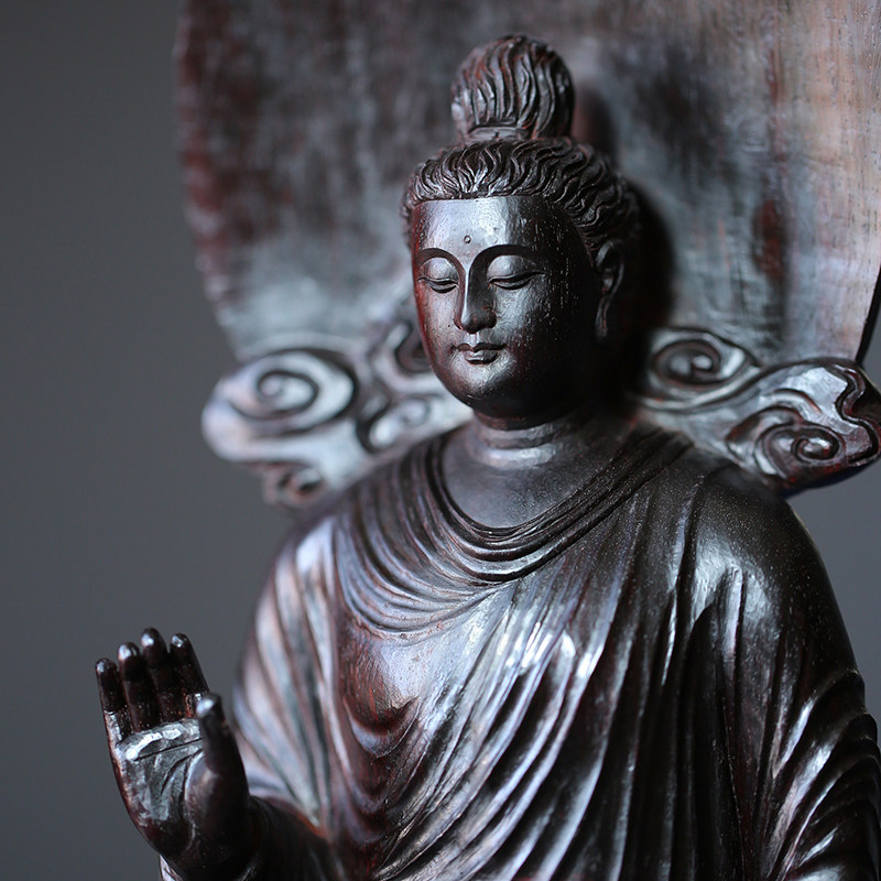 Huanghuang Muji Gandhara Индийский маленький лист красный красный сандаловый дерево резьба ручной работы ручной работы из красного дерева Будда Статуя Коллекция