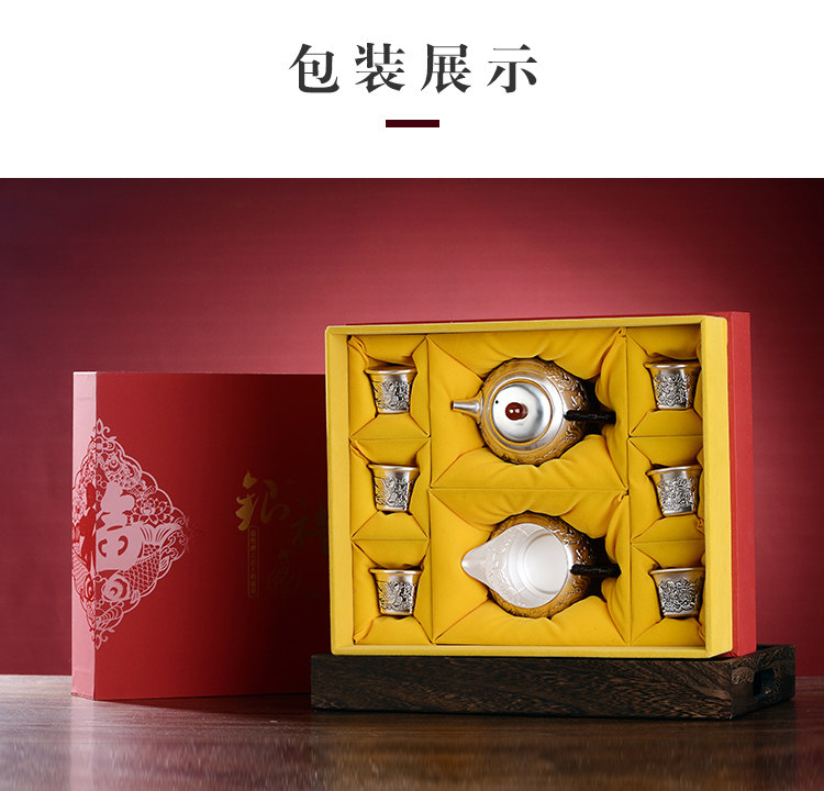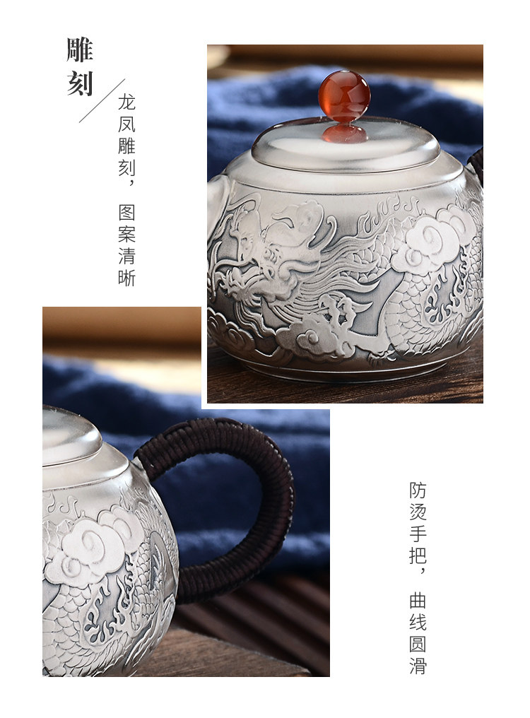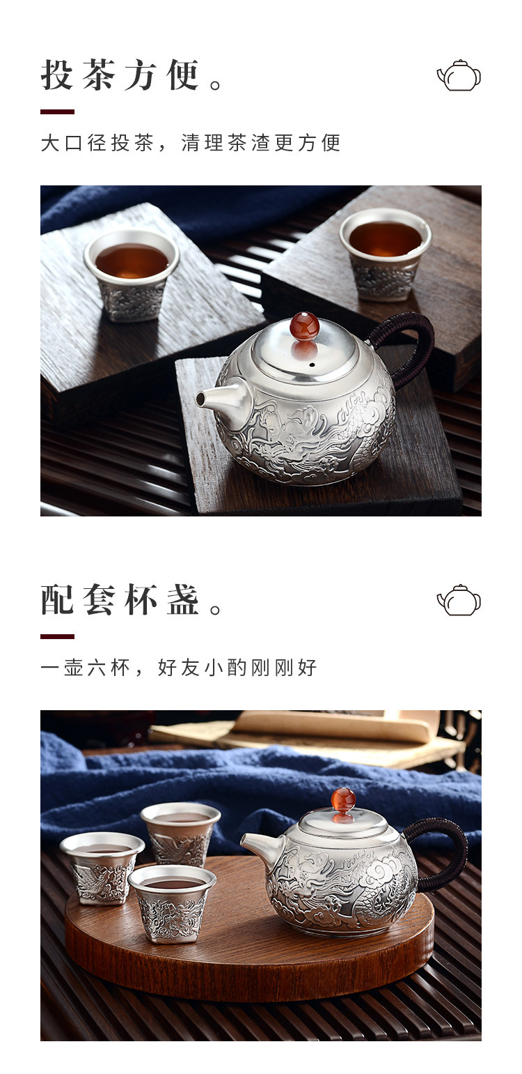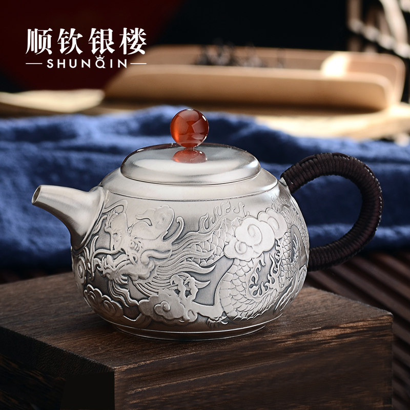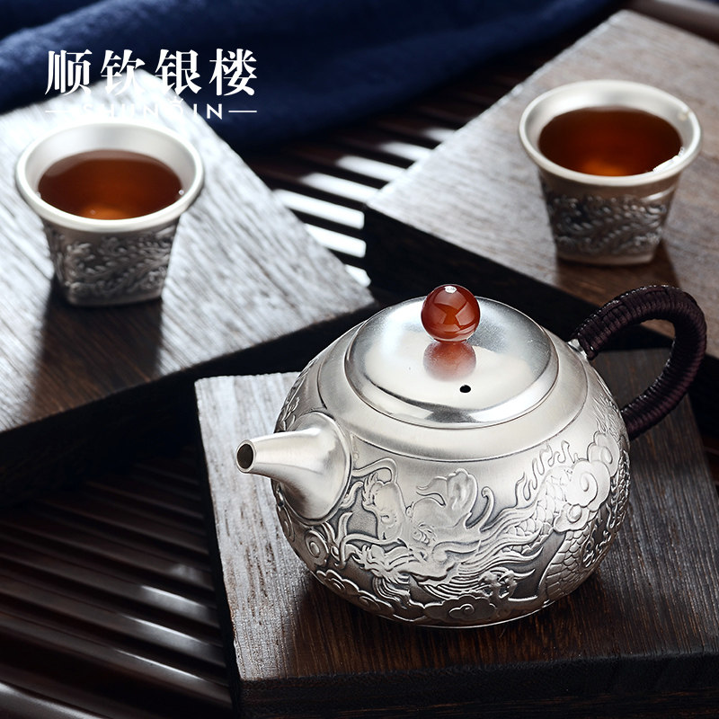 Чайный сервиз, комплект, заварочный чайник, серебро 999 пробы, дракон и феникс, подарок на день рождения