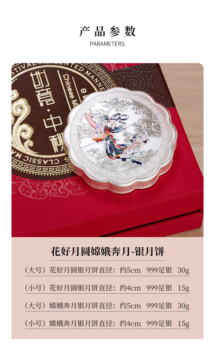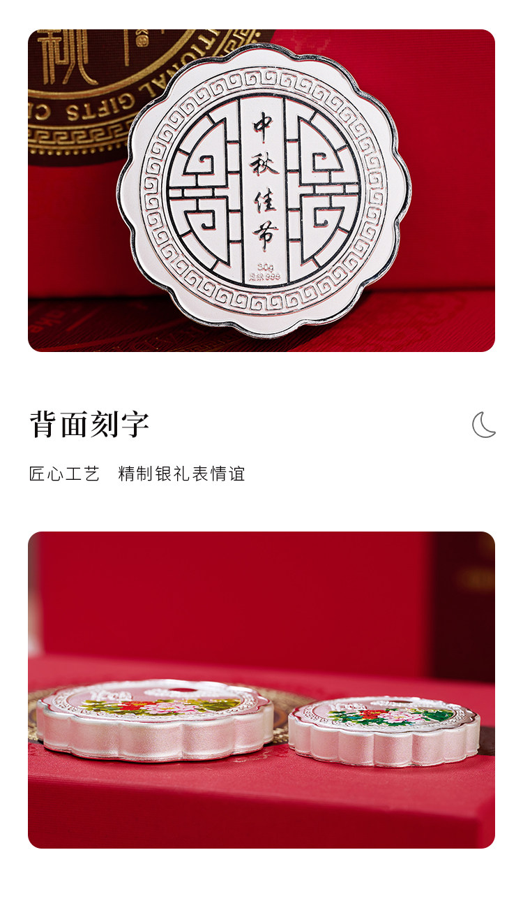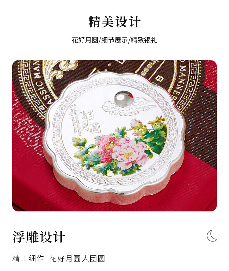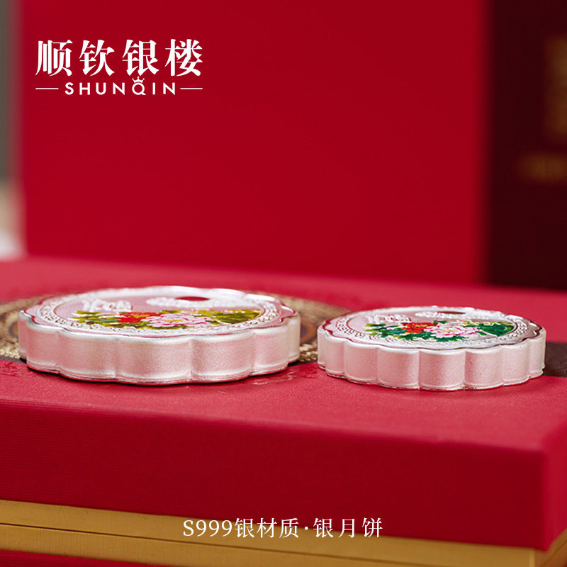 Shunqin Silver House S999 Серебряная серебряная луна торты, цветочная луна, серебряные украшения, дары лидерам, подарки в середине осени фестиваля