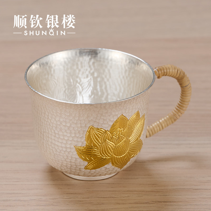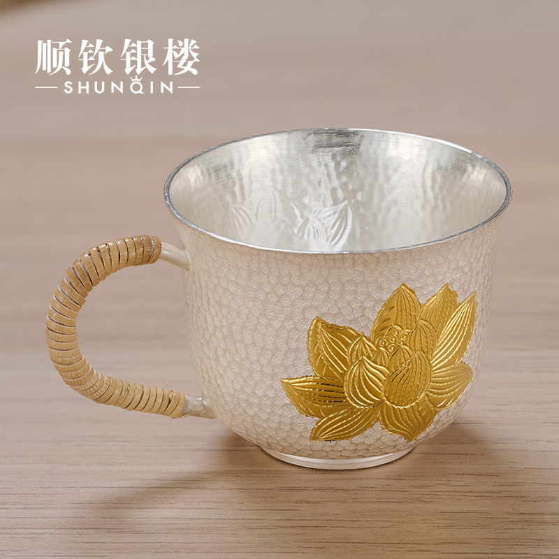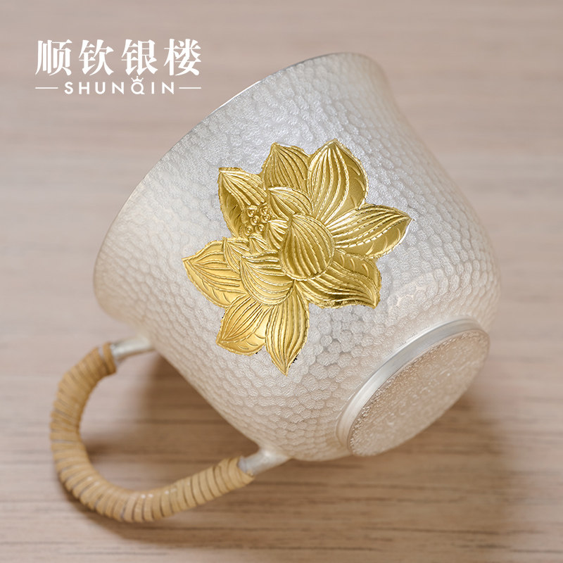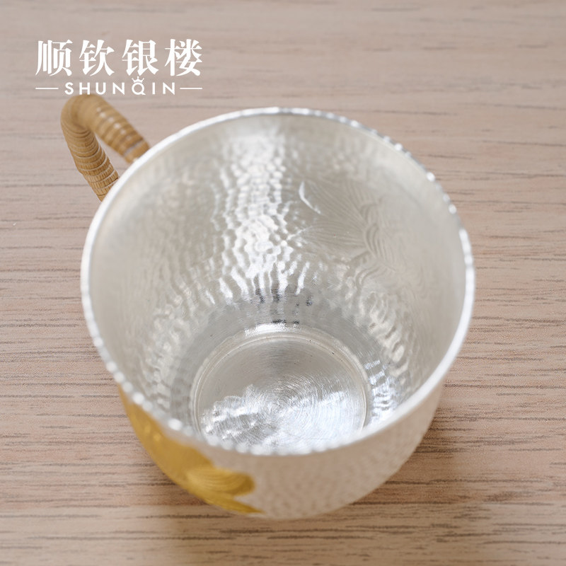 Чайная чашка ручной работы, с кованным узором очиститель для серебра, чайный сервиз, серебро 999 пробы