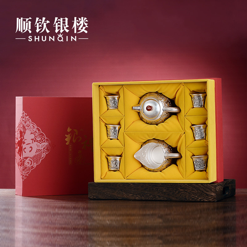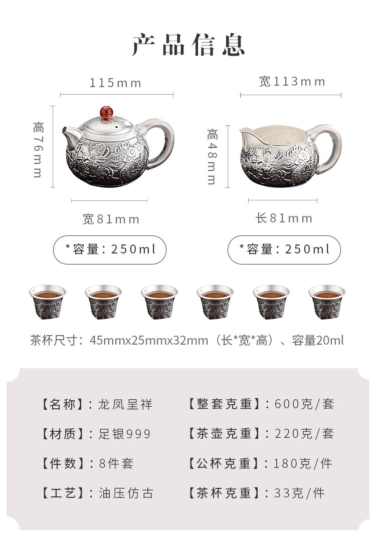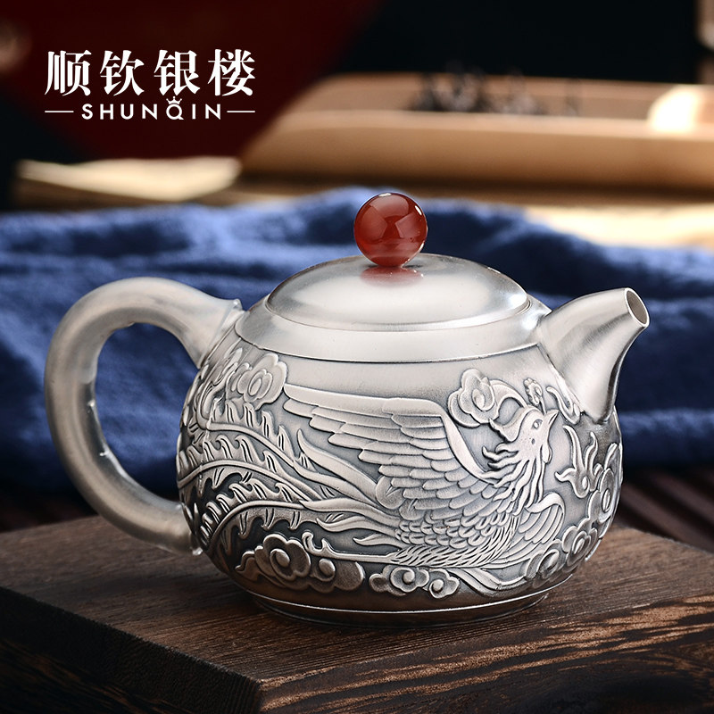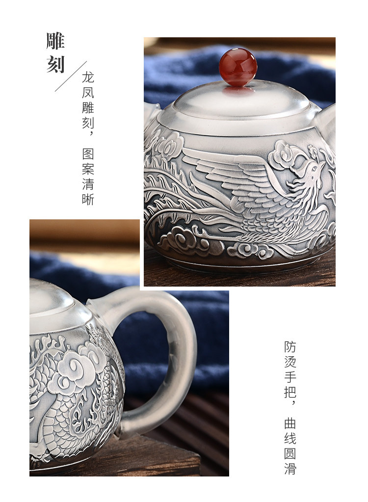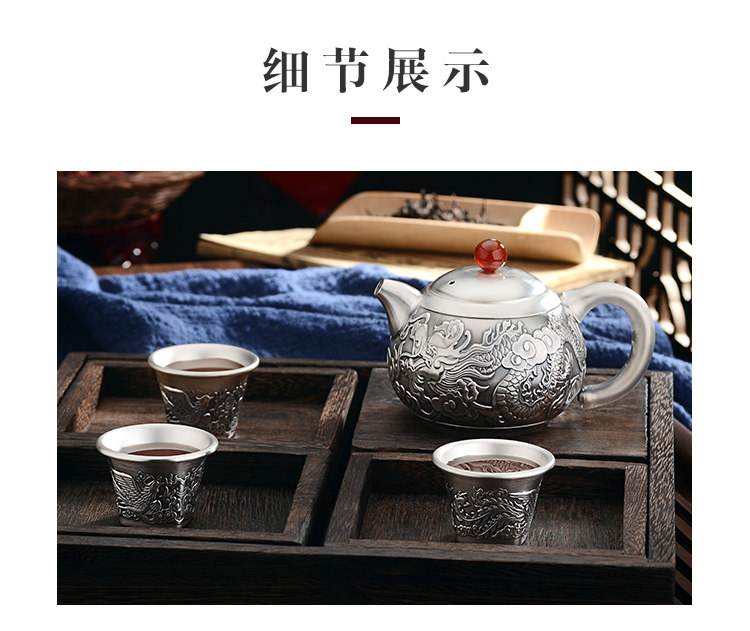 Чайный сервиз, высококлассный комплект, серебро 999 пробы, дракон и феникс, китайский стиль