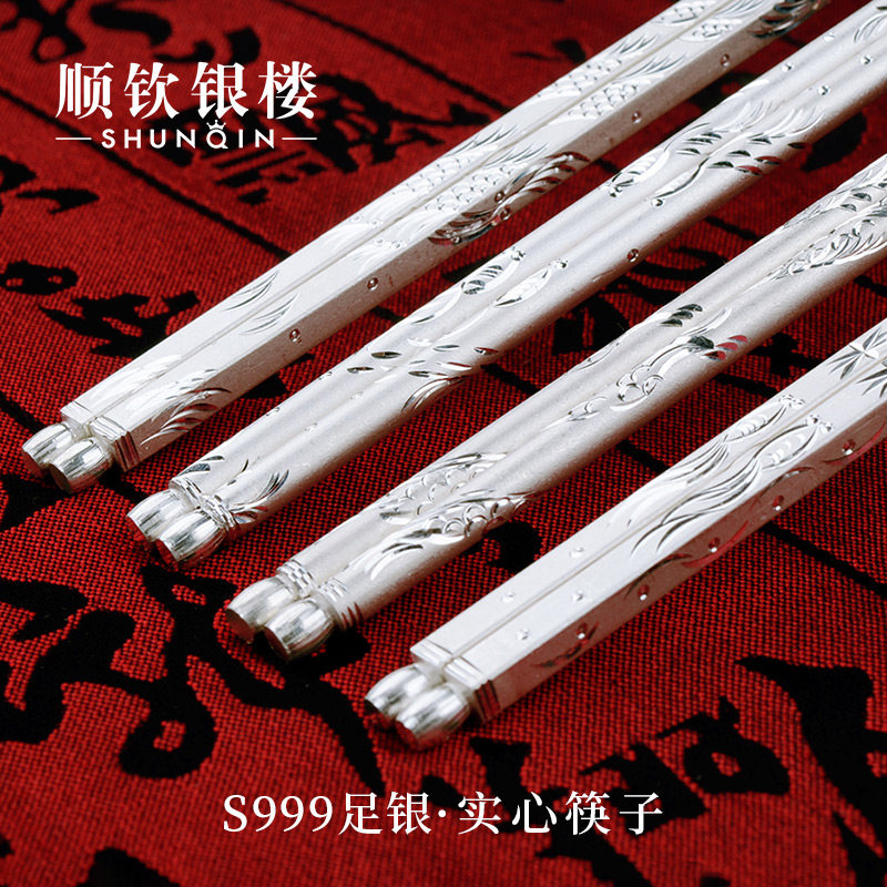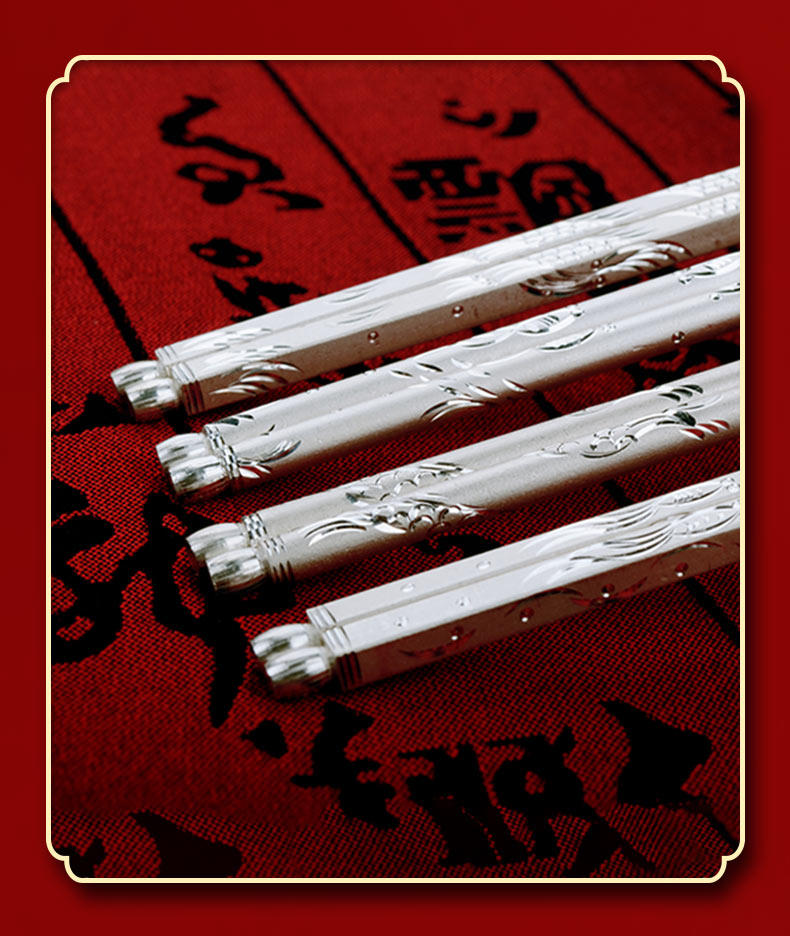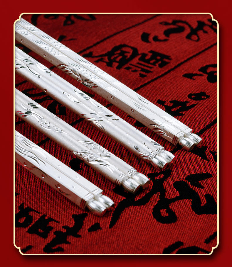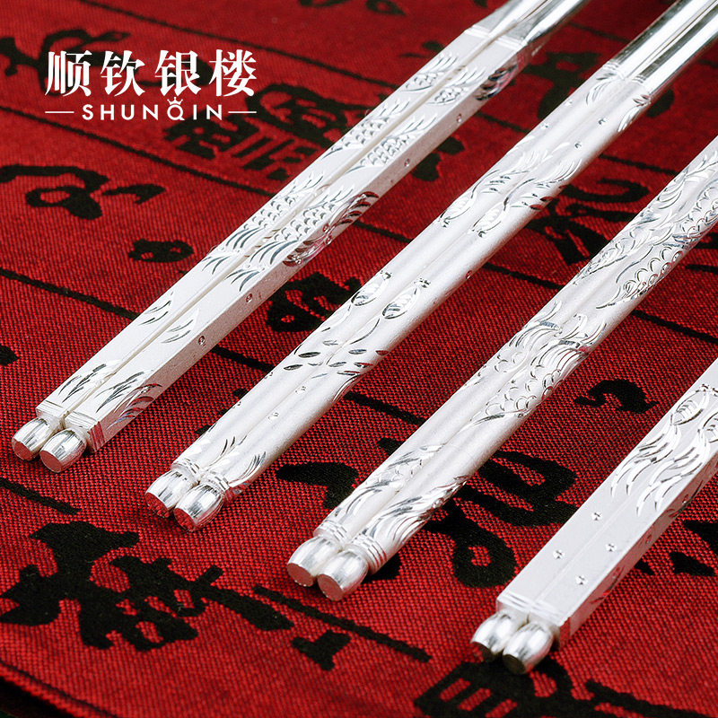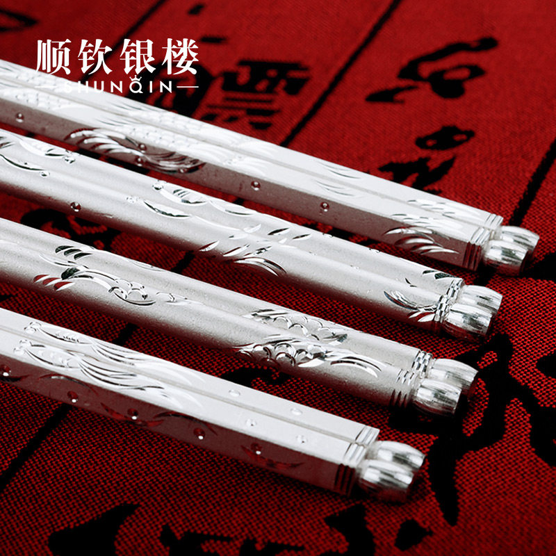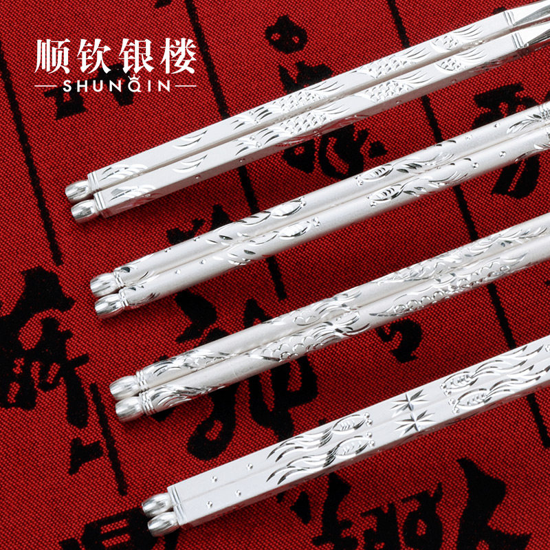 Посуда, серебряный браслет, палочки для еды для домашнего использования, серебро 999 пробы, дракон и феникс