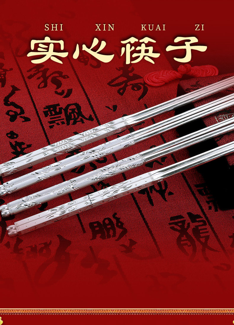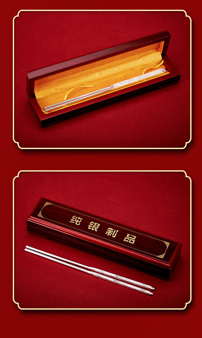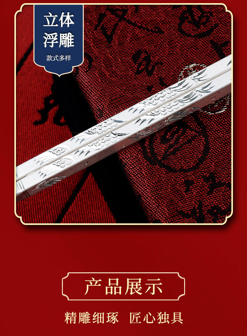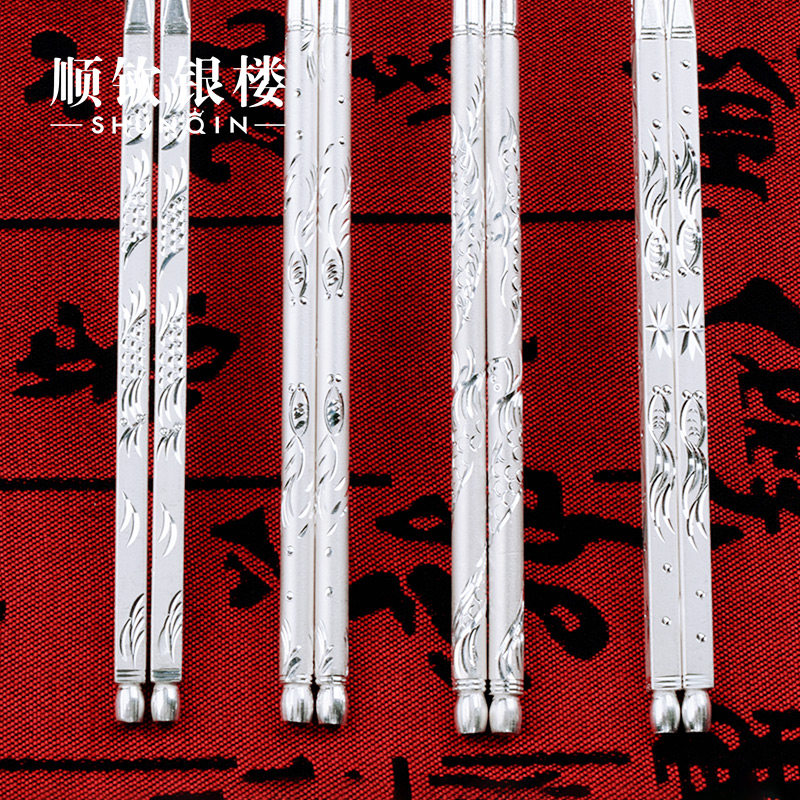 Посуда, серебряный браслет, палочки для еды для домашнего использования, серебро 999 пробы, дракон и феникс