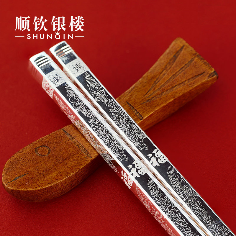 Палочки для еды, серебряный браслет, памятная посуда, серебро 999 пробы, подарок на день рождения