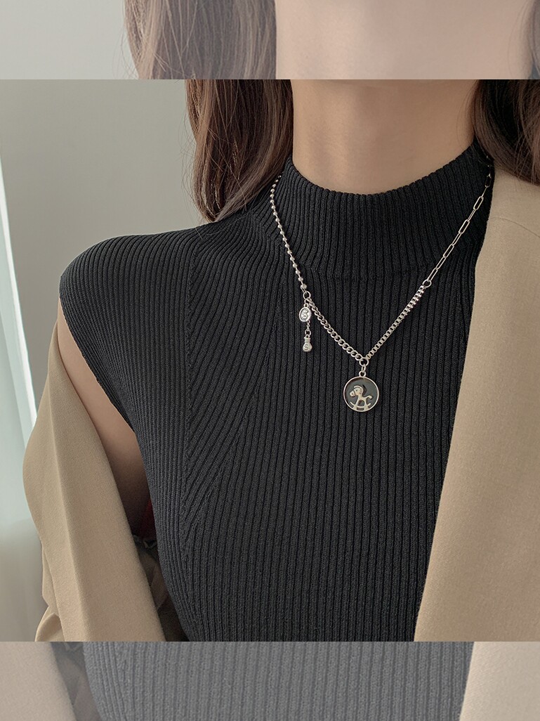 Дизайнерская ретро пони, высокое небольшое ожерелье, универсальный свитер, Франция