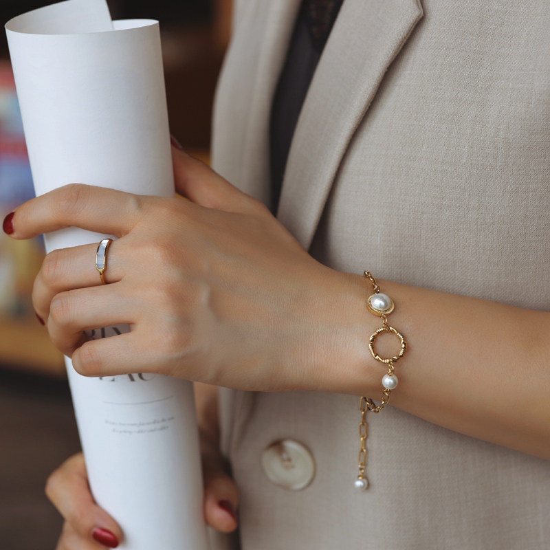 Дизайнерский геометричный брендовый небольшой браслет из жемчуга, изысканный стиль