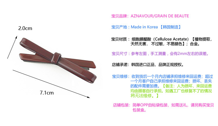 Южная Корея импортировала аксессуары для волос Aznavour/Grain de Beaute Bow Duckbone Hair Clip Edge Clip Bang Clip