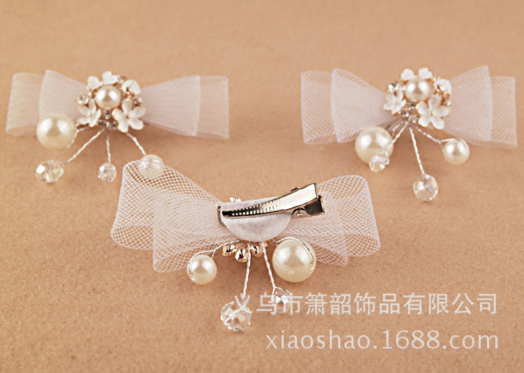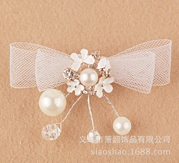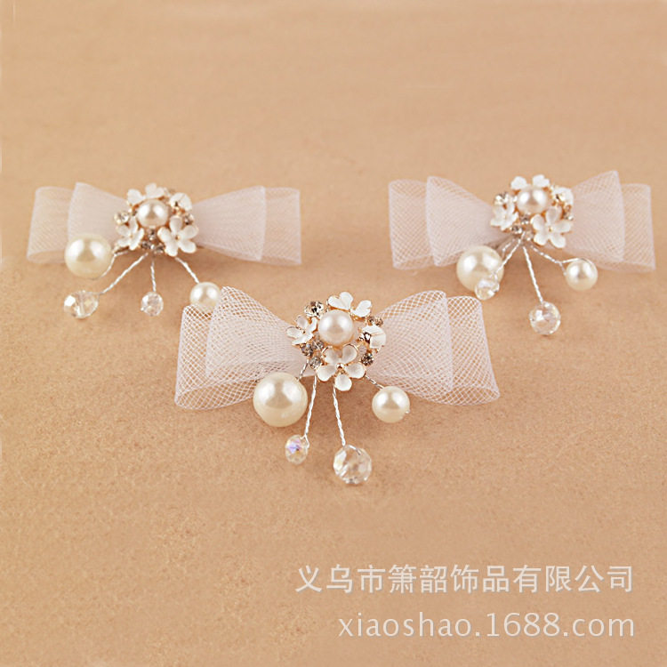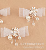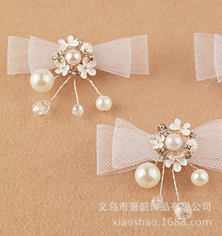 Белый милый аксессуар для волос для невесты из жемчуга с бантиком, заколка для волос