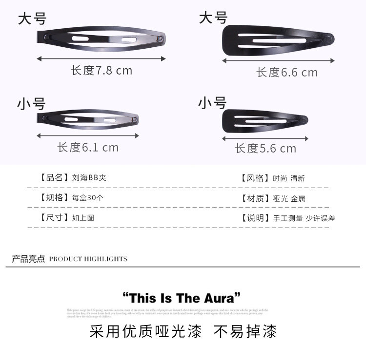 Милая челка для взрослых, заколка для волос, детские матовые черные шпильки для волос, простой и элегантный дизайн