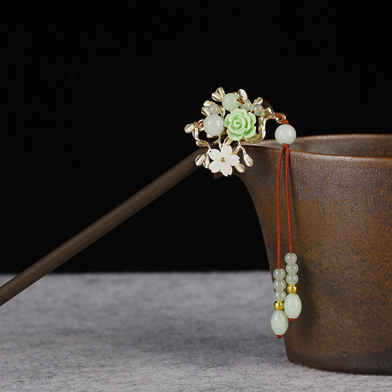 Ханьфу, деревянный аксессуар для волос, китайская шпилька с кисточками, заколка для волос, ципао