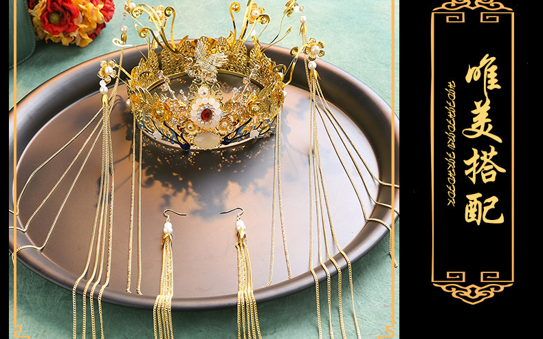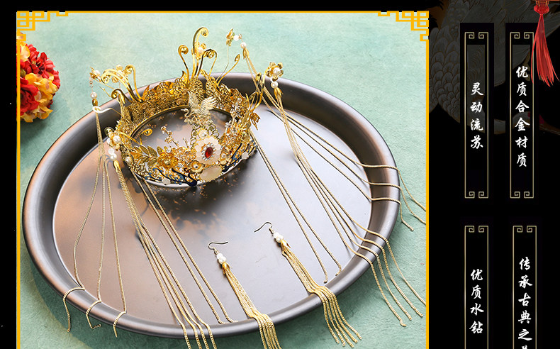 Тиара для невесты, аксессуар, китайский стиль, дракон и феникс