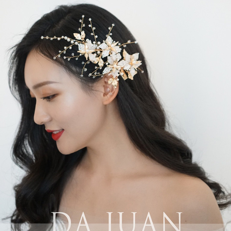Корейский свежий золотой браслет из бисера ручной работы для невесты, свадебное платье, аксессуар для волос