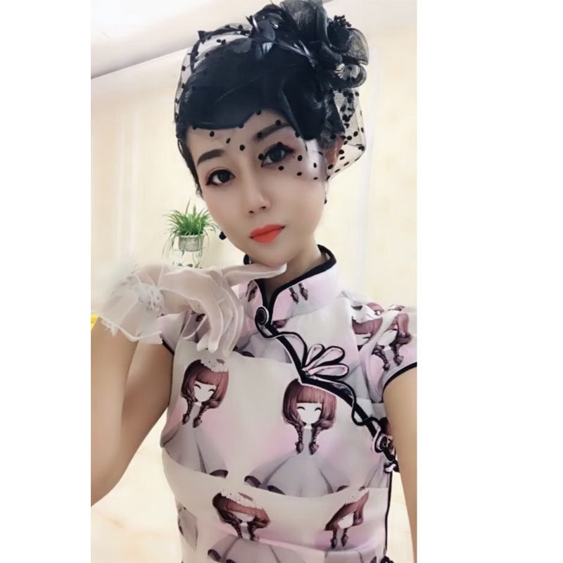 Ретро вуаль для невесты, вечернее платье, аксессуар для волос, черное ципао