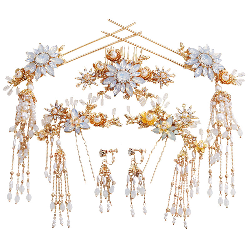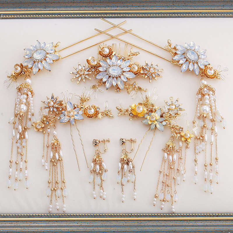 Ханьфу для невесты, аксессуар для волос, комплект с кисточками, китайский стиль
