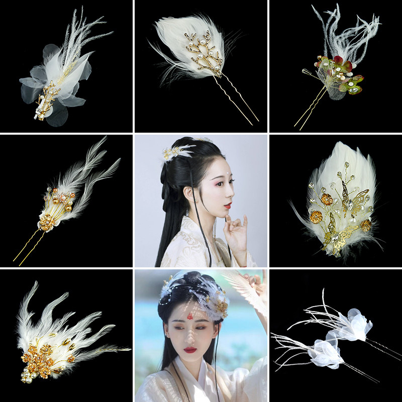 Парик, комплект подходит под национальную одежду, аксессуар для волос, классическая белая заколка для волос, китайская шпилька, набивка пером