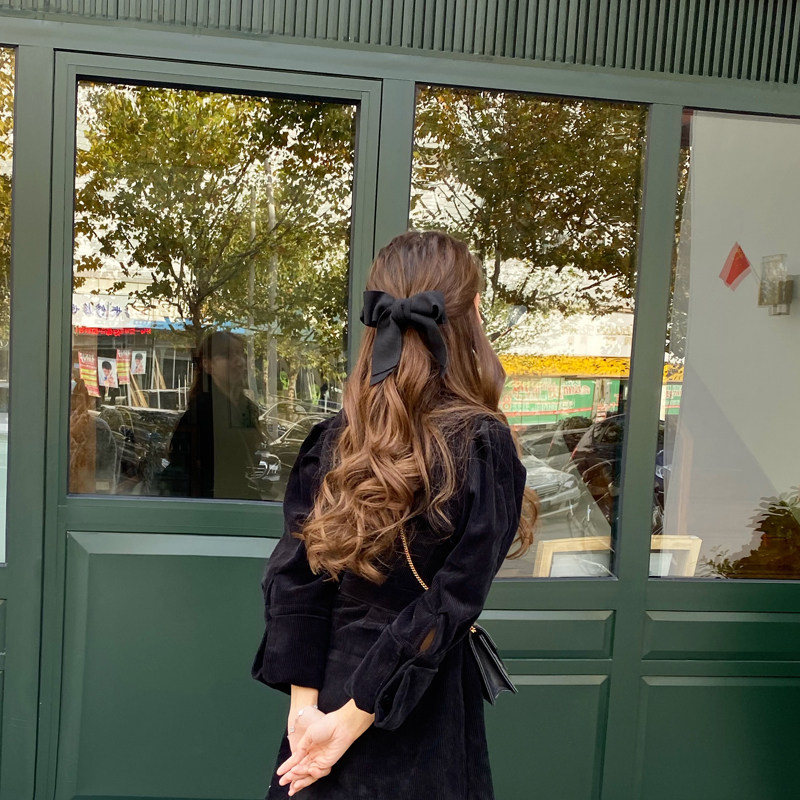 Ретро черная заколка для волос с бантиком, универсальный большой хвостик, в западном стиле